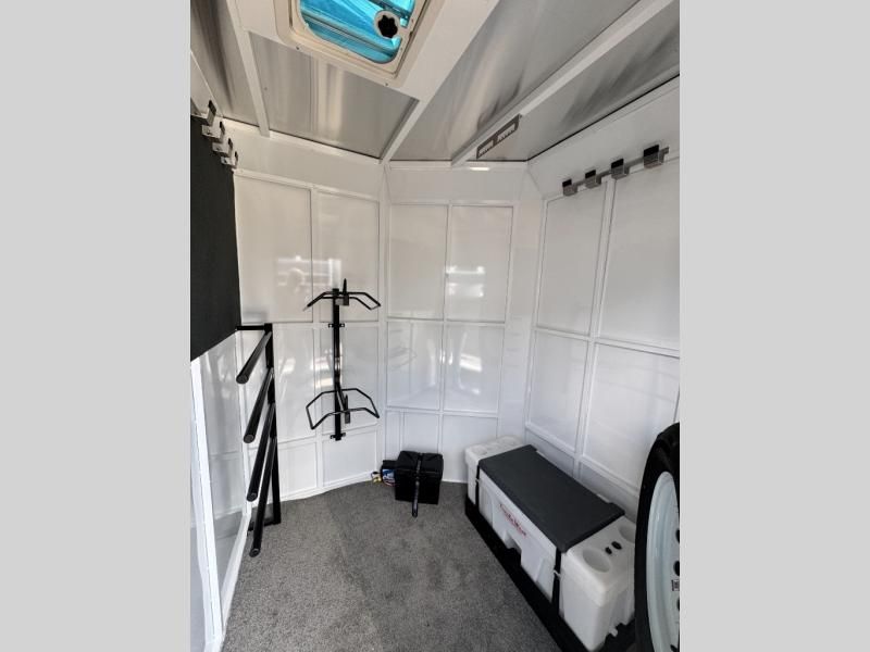 The 2026 Trails West Royale Plus is a premier straight-load bumper pull designed specifically for larger horses, such as Warmbloods, that require extra room and a more open environment. Standing at a specialized 7'6" tall and 6'9" wide, this "Royale Plus" model offers one of the industry's largest stalls to ensure maximum comfort during long hauls. A standout feature of the Plus series is its versatile walk-through loading style and a fully removable divider system, allowing you to quickly convert the interior into a single large box stall if needed. Built with Trails West’s signature triple-wall construction and a one-piece aluminum roof, this trailer provides a quiet, temperature-controlled environment that is as durable as it is spacious.