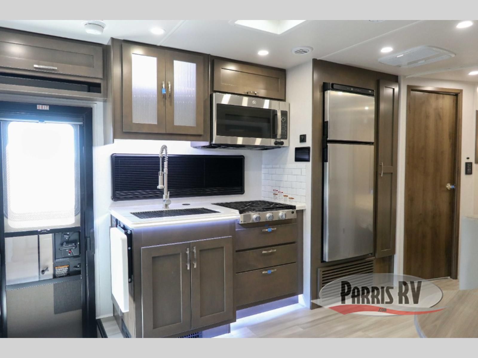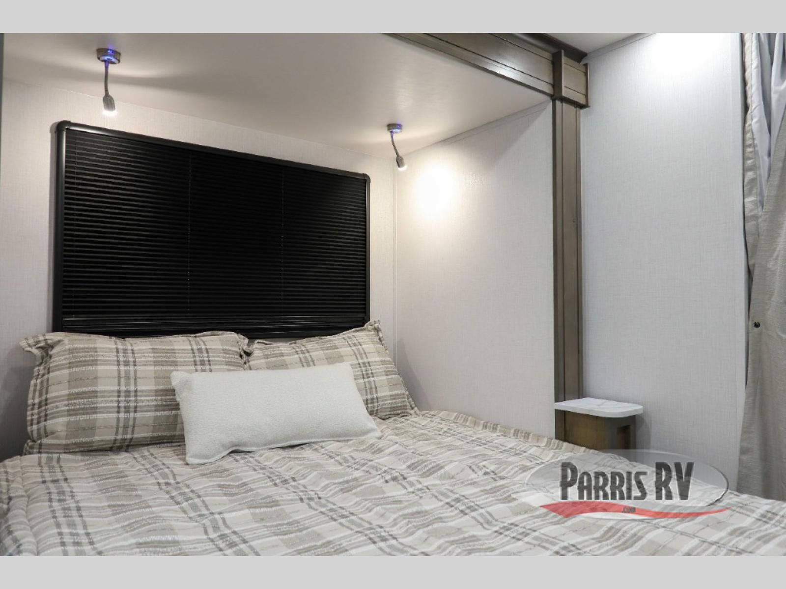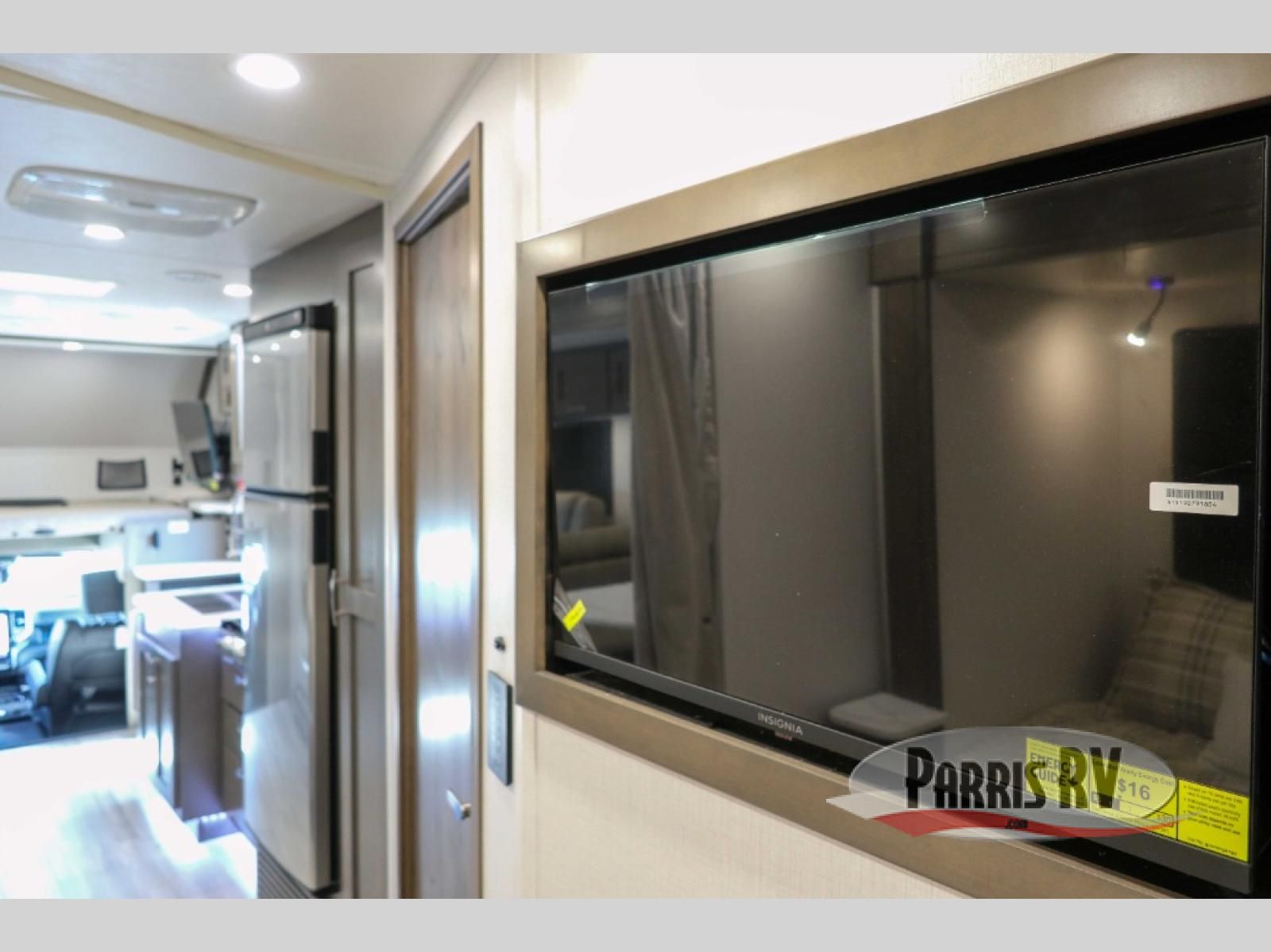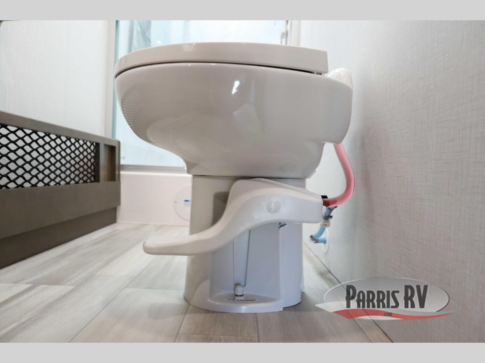 You will have plenty of space to walk about this motorhome with the dual slides! The booth dinette and sofa slide create an open concept living area and the sofa can be replaced for the optional theater seating if you prefer that instead. Freshen up after a long day of traveling in the rear corner bathroom with the designer shower that has a skylight above for more natural lighting and an Oxygenics body spa RV shower head for a more relaxing shower. Put on your comfy clothes stored in the wardrobe in the rear corner private bedroom then either lay on the 60" x 75" gel-infused memory foam mattress while you watch a movie on the 32" LED smart TV or head to the kitchen and whip up a meal with the three burner gas range and countertop extension. You could even head outside and watch a movie on the exterior 32" TV underneath the 16' dual-pitch armless awning!