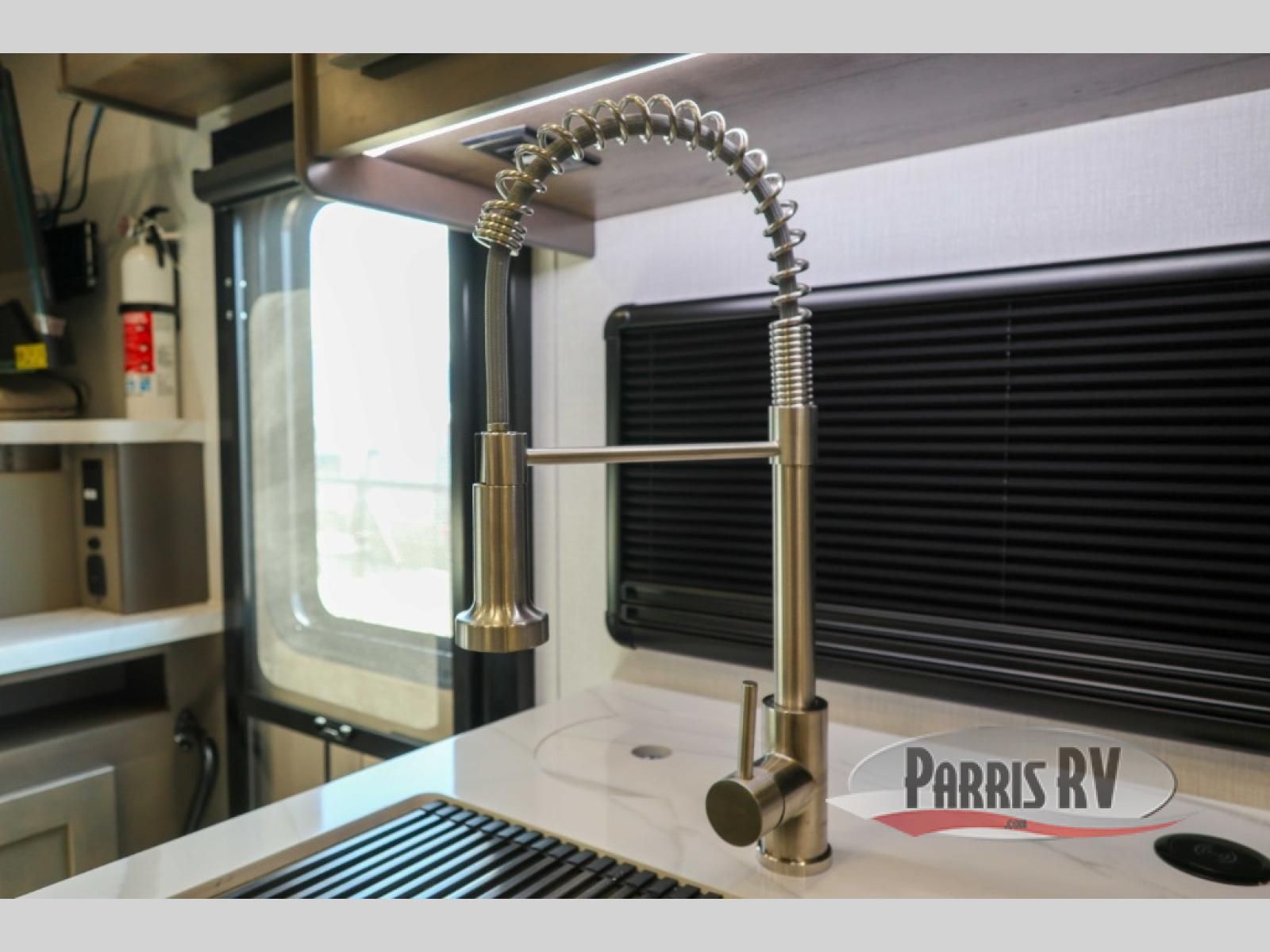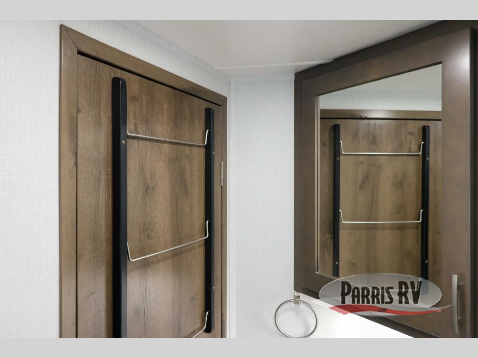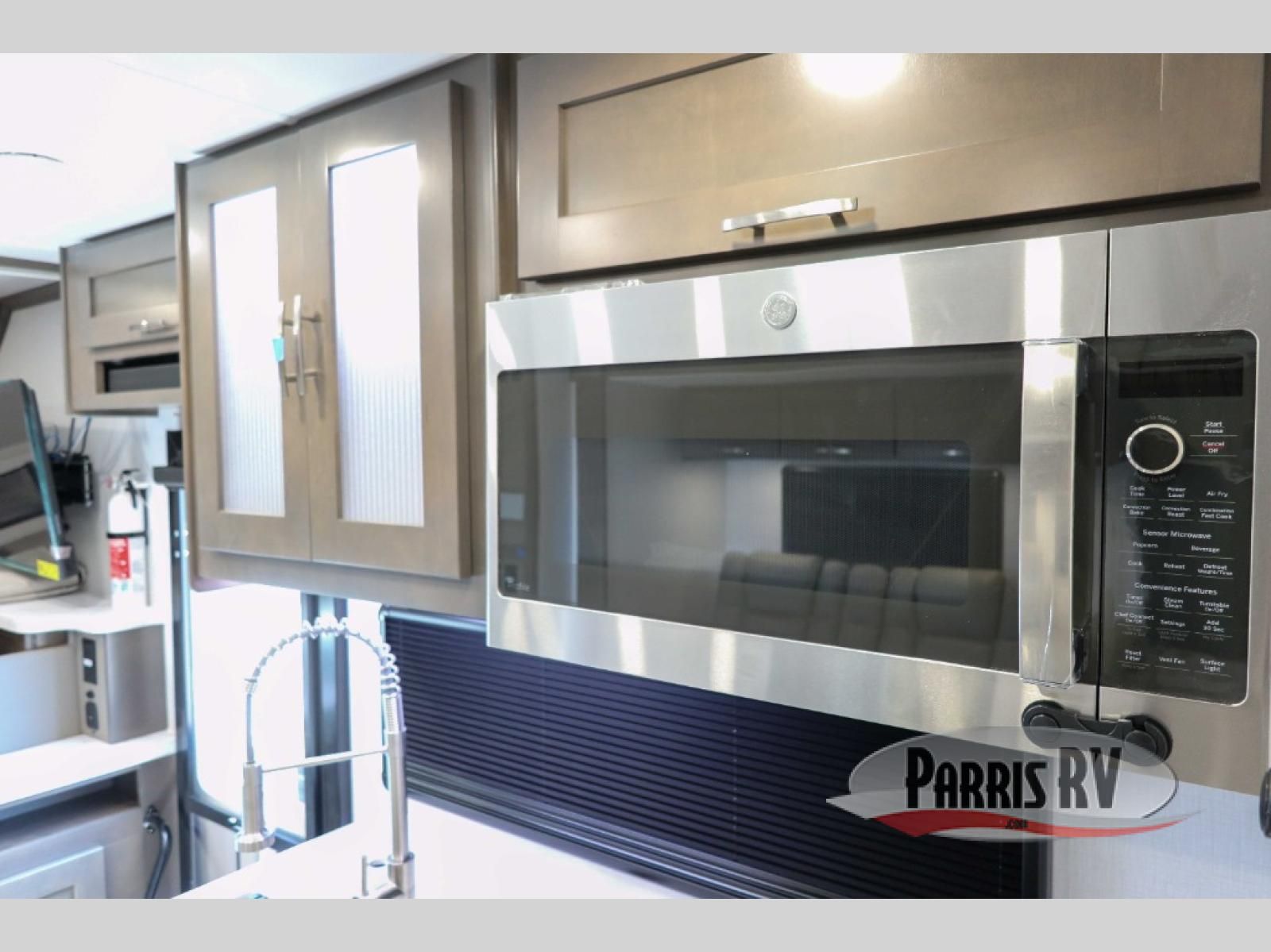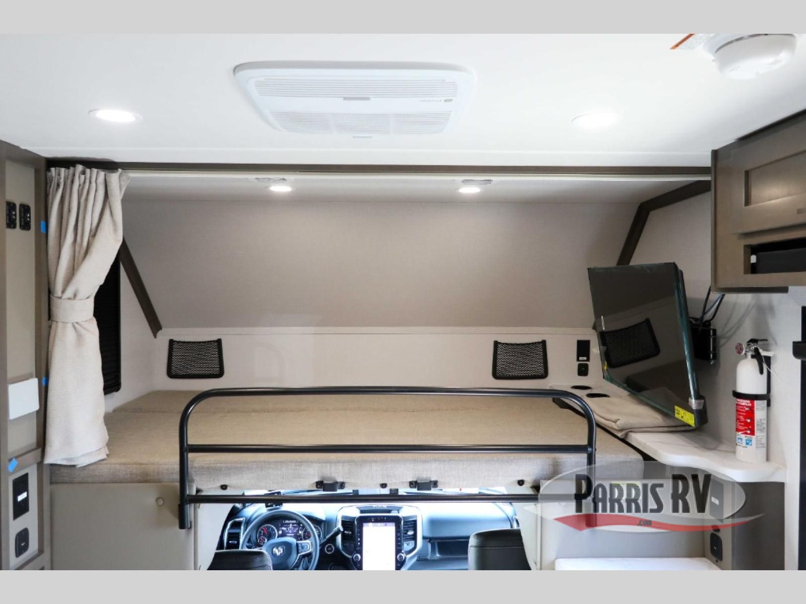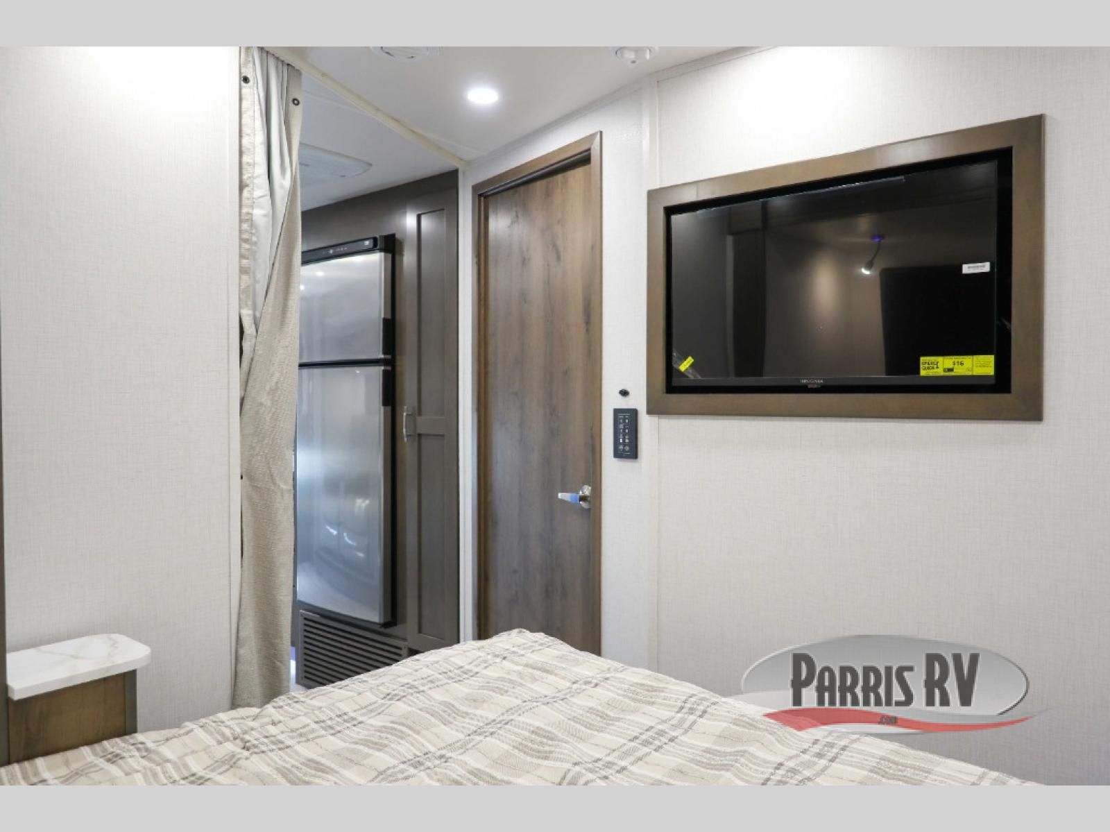 You will have plenty of space to walk about this motorhome with the dual slides! The booth dinette and sofa slide create an open concept living area and the sofa can be replaced for the optional theater seating if you prefer that instead. Freshen up after a long day of traveling in the rear corner bathroom with the designer shower that has a skylight above for more natural lighting and an Oxygenics body spa RV shower head for a more relaxing shower. Put on your comfy clothes stored in the wardrobe in the rear corner private bedroom then either lay on the 60" x 75" gel-infused memory foam mattress while you watch a movie on the 32" LED smart TV or head to the kitchen and whip up a meal with the three burner gas range and countertop extension. You could even head outside and watch a movie on the exterior 32" TV underneath the 16' dual-pitch armless awning!