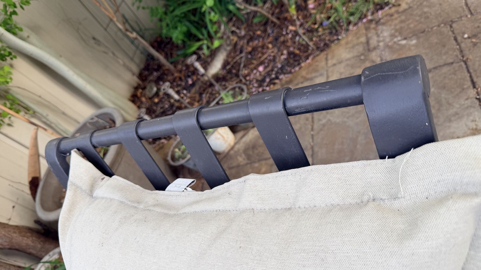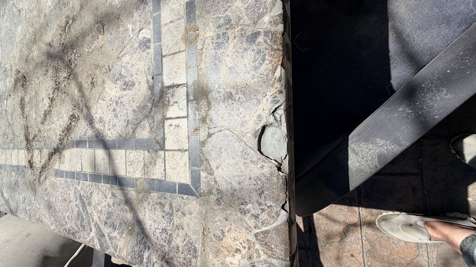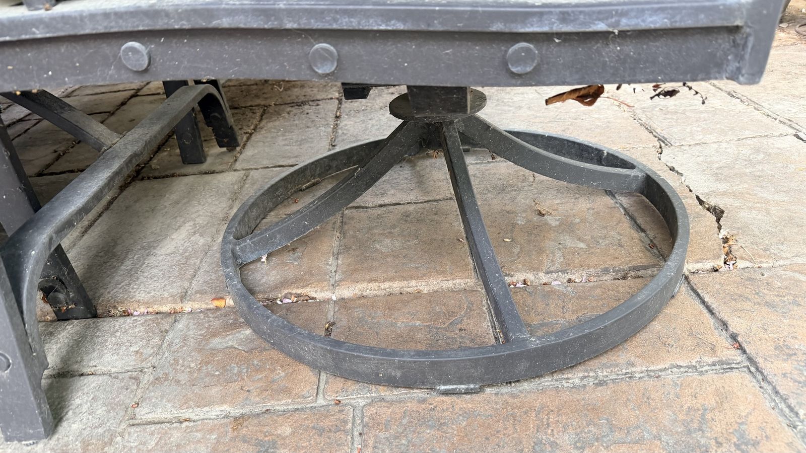VenmoThis set is extremely well built and durable. Chairs are oversized, 2 with swivel Rockers, 4 without. The frame is solid cast aluminum with a powder finish to withstand rust.The cushions are sunbrella navy blue and beige. The table and cushions need a good hose down. They have some minor fading and a few stains from trees. The top is a beautiful stone marble . bty table is heavy.. The umbrella base is included as well.. If you like this set I am also selling outdoor firepit and 2 lounge chairs that are part of this set.