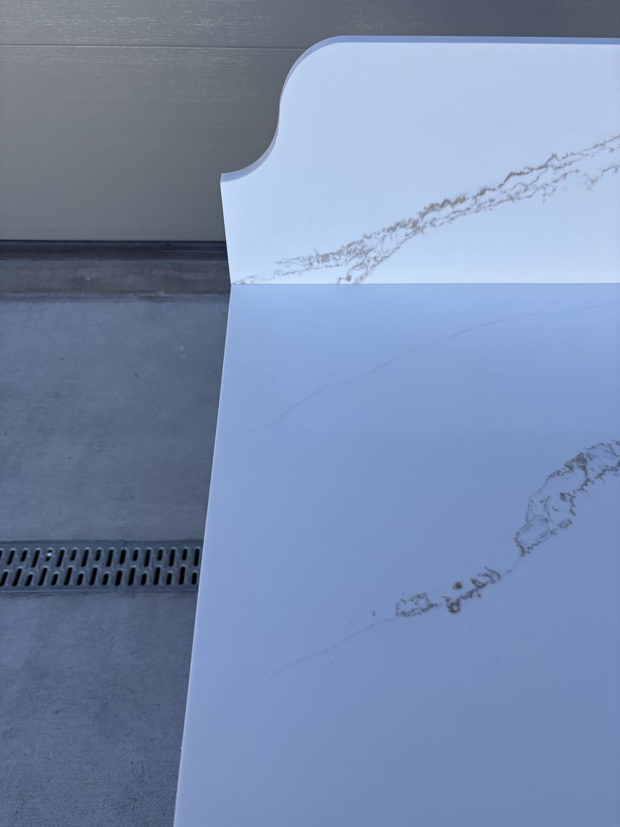 ZelleQuartz bathroom countertops. Dimensions W 41.25” D 22.5” Backsplash 10” High Faucet not included