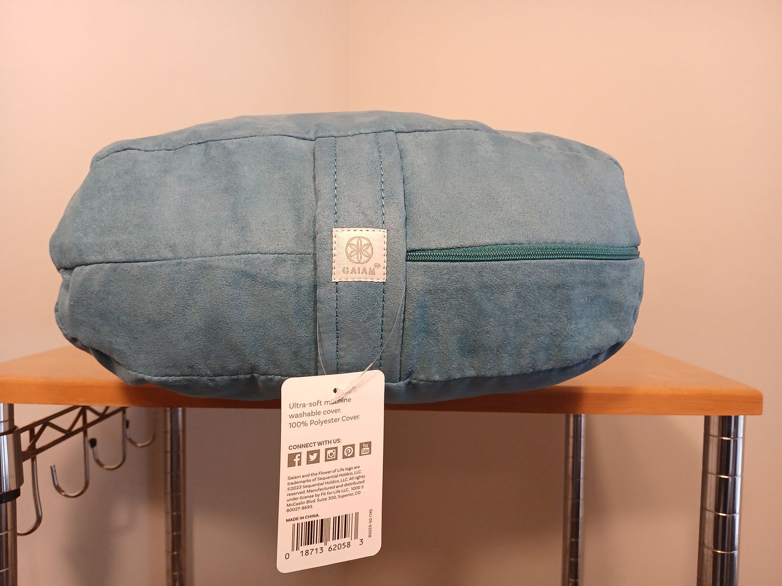 Removeable and washable soft polyester faux-suede cover over natural cotton batting.
