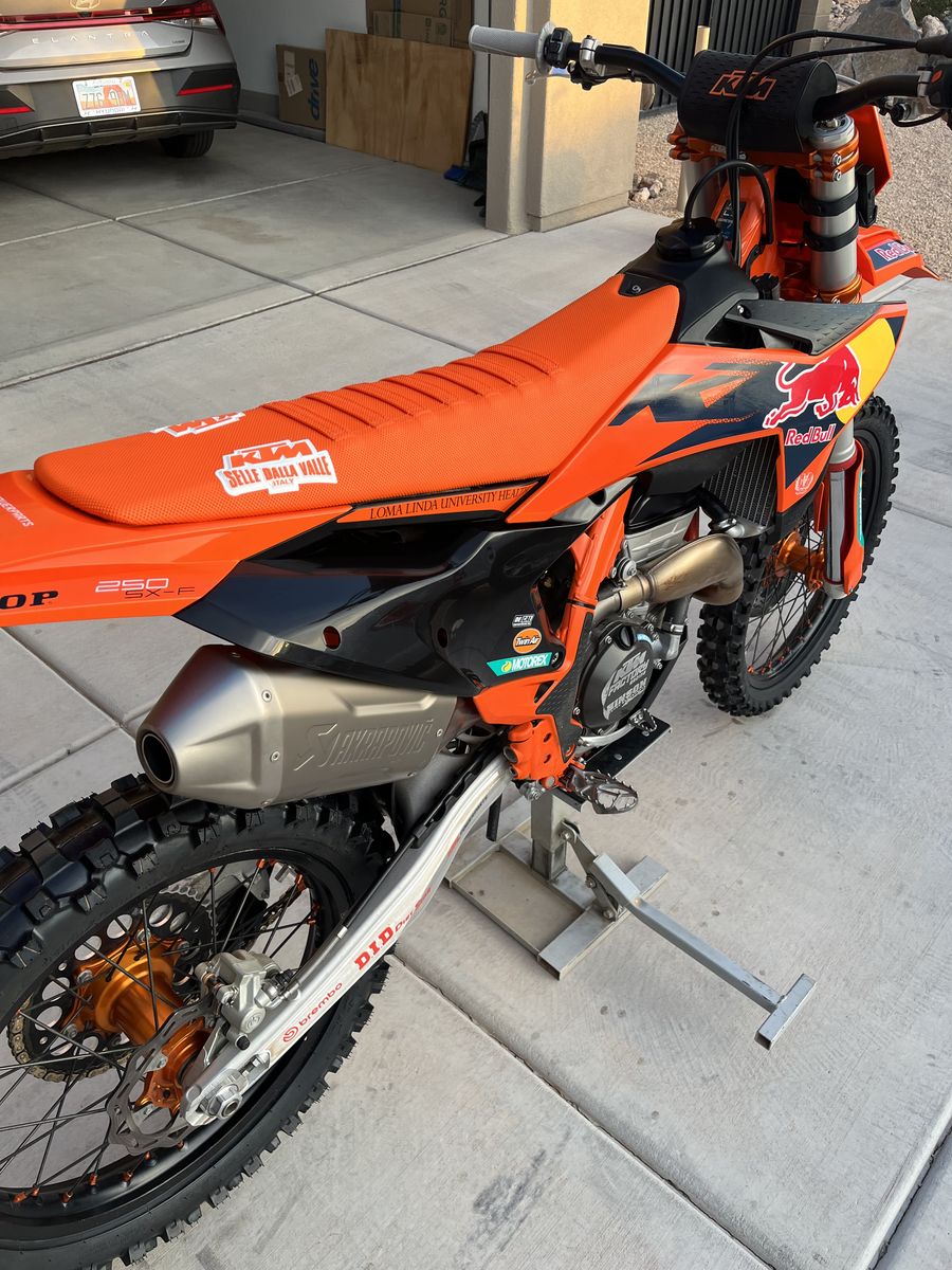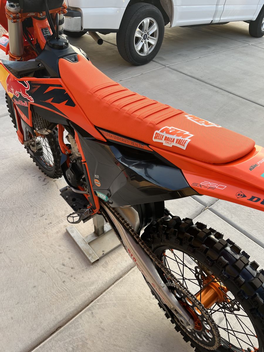 Very clean like new factory KTM 250 SXF with brand new tires, chain and sprockets, garage kept, one owner old vet guy, maintained perfectly. This Bike was $11,400.00 New and is in perfect shape. Bike is ready to ride. Will entertain reasonable offers. Bike has 81.5 hours on it. No trades please. Cash only.