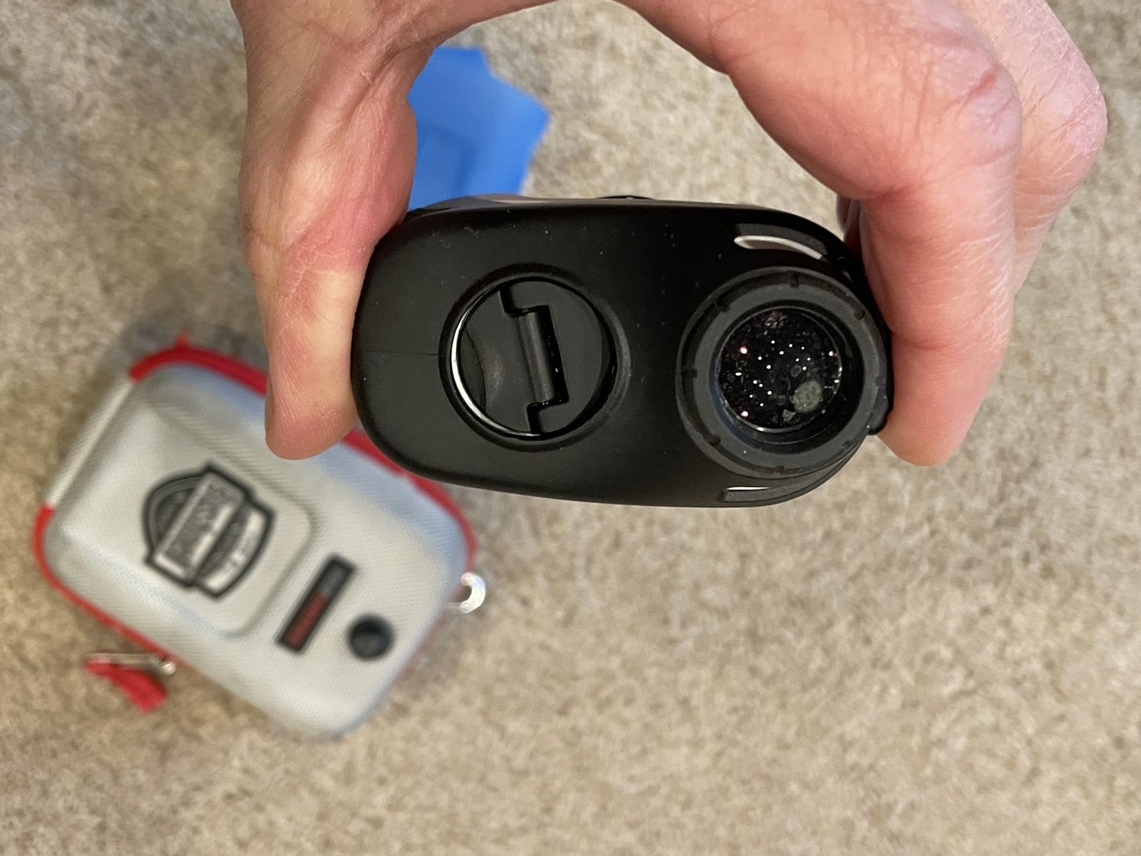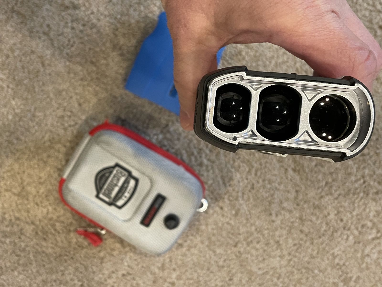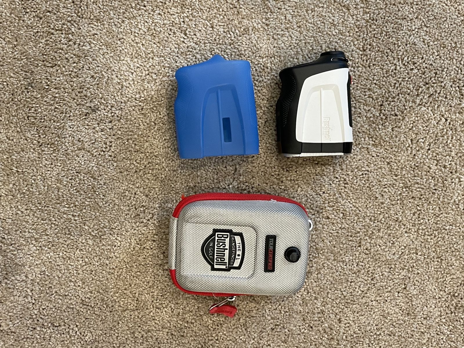 Bushnell laser golf rangefinder that appears to be in very good condition. It came with a set I purchased so I do not know how old it is or its history, etc. I tested it out against my rangefinder and the yardages were +/- a yard. I believe this version is straight distance only. The battery is "newish" I took the one out of my rangefinder as there was no battery with this one.