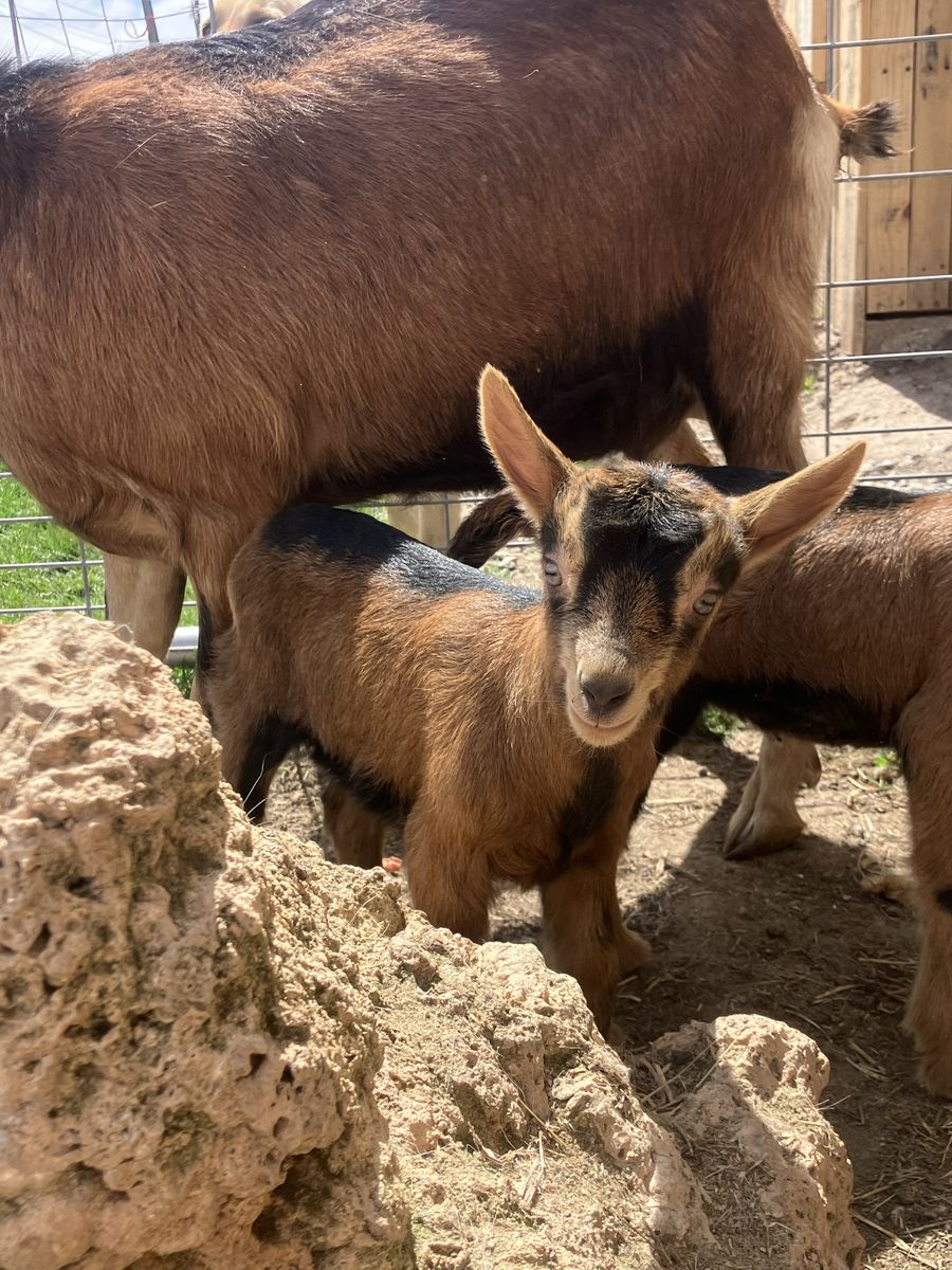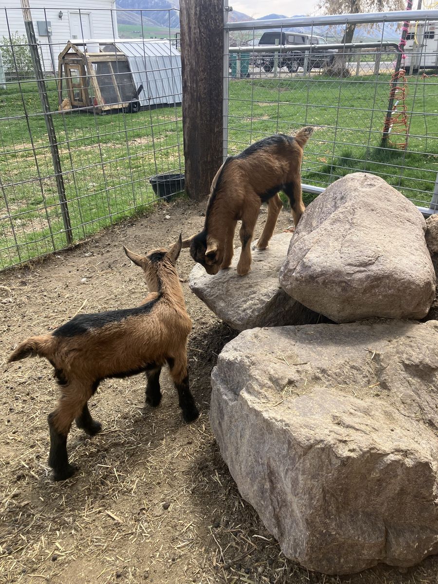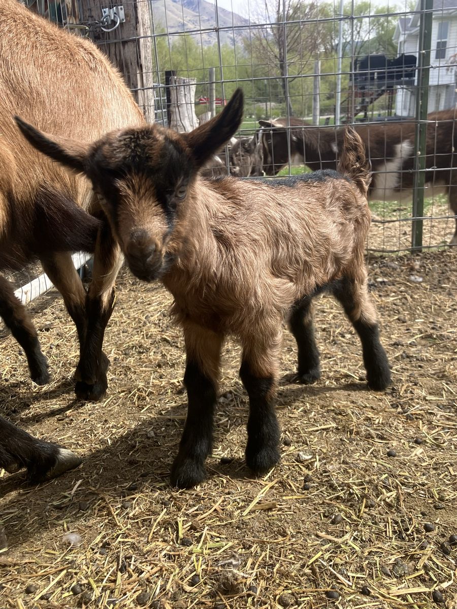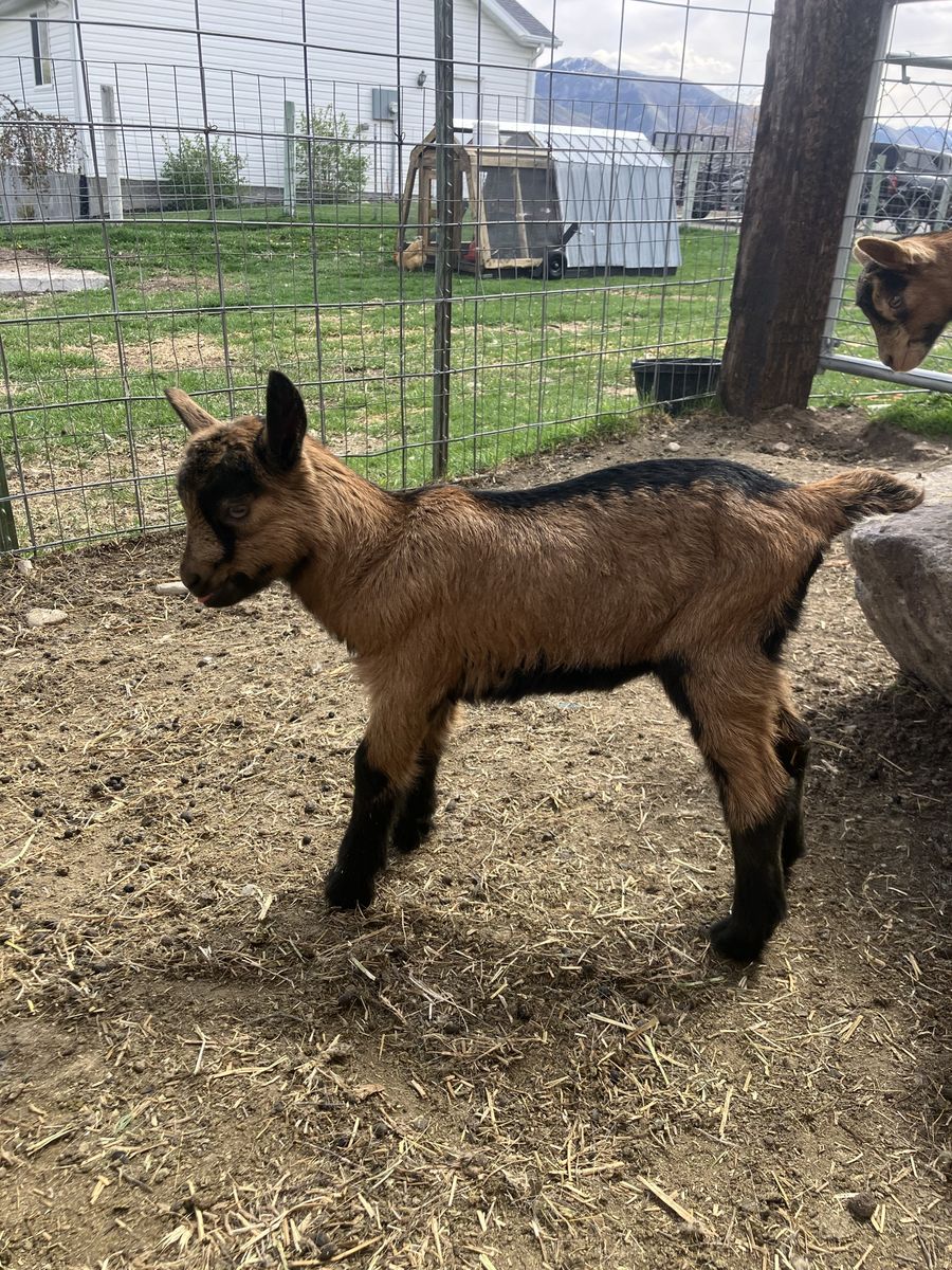 VenmoWe have 4 kids just born early April. We have the sire and both dams on site. The first picture is a buckling and the other 3 are doelings. The sire is full Oberhasli and the dams are both 1/4 Oberhasli and 3/4 Alpine making the kids rounghly 2/3 Oberhasli and 1/3 Alpine. The doelings will make great milkers as both dams have put on nice udders and both these breeds are exceptional dairy goats. We could band the buckling upon request. $125 for the doelings and $100 for the buckling. We can hold babies for a $50 non refundable deposit that will go towards the purchase price if you would like them nursing until they are weaned. Also if you would like to bottle feed you could purchase within the next week. We will accept cash or venmo.