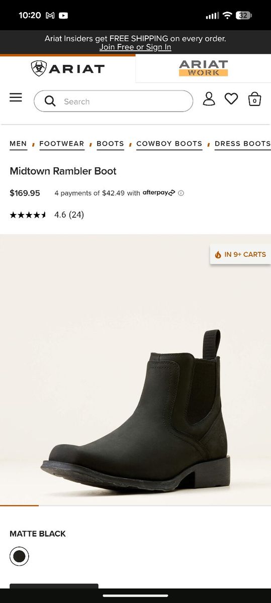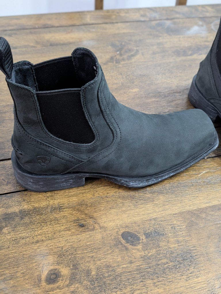 VenmoSize 9.5D. Like new Ariat Midtown Rambler in Matte Black. Worn a handful of times to work (office environment). This leather is so soft to the touch! Great looking boot!