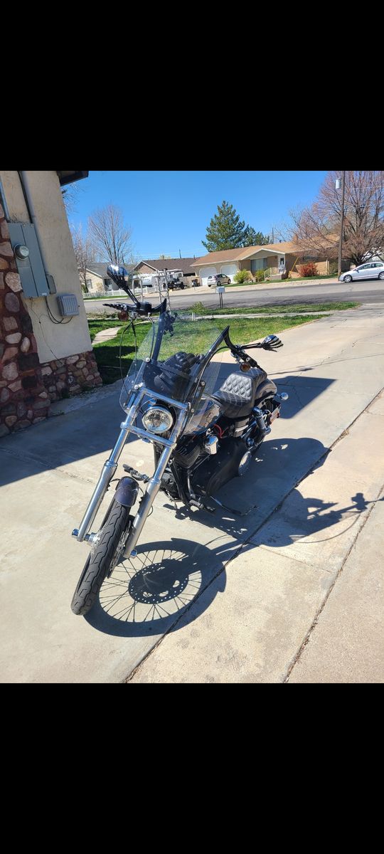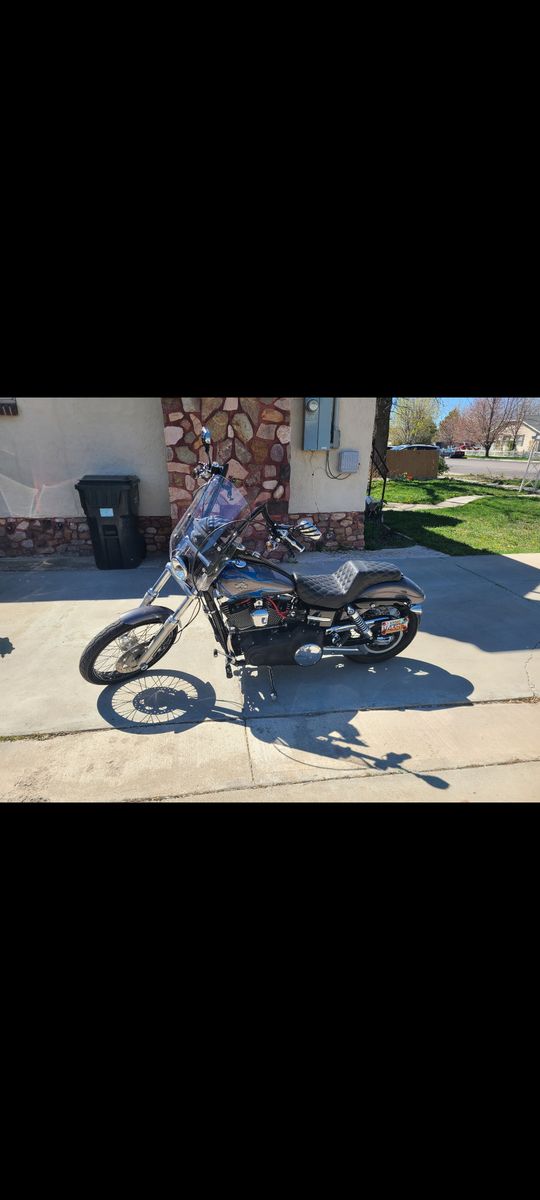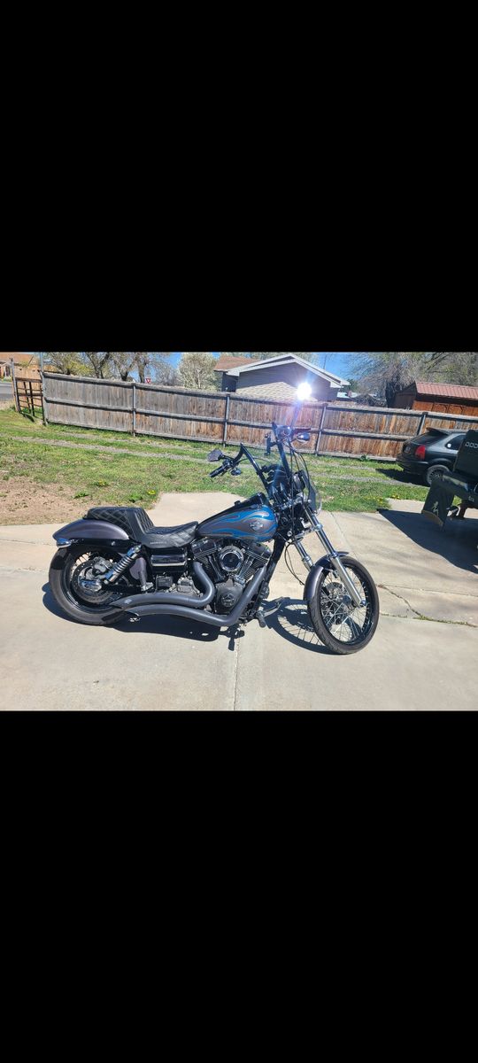 2014 Harley Davidson Dyna Wide Glide 1690 cc 103ci 6 speed. Beautiful bike have loved owning it but have a baby now and it just sits. Runs great never had a problem, has a stage one tune and comes with the tuner. Has 16" apes removable spartan windshield. Aftermarket skull mirrors and brake/clutch levers. Saddlemen seat with removable back rest for passenger, Vance and Hines exhaust, Arlen Ness air cleaner. Smoked turns signals. And a brand new tube in the back tire. Also comes with bike cover 9500 obo