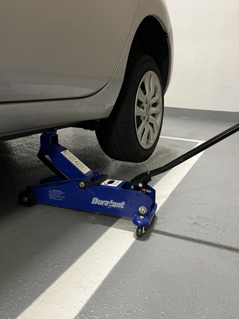 Small trolley floor jack. Good condition. Min height is 5.5”. Max height 14.5”. Good lightweight design to be easily taken with you to change a tire.