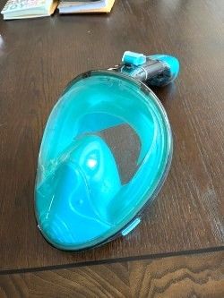 VenmoThis snorkeling mask is the full face type that allows you to see clearly and breath easily. It is in GREAT condition and has only been used on one trip. It cames with a mesh bag to hold it, instruction manual on how to use, other information booklets, and spare parts!