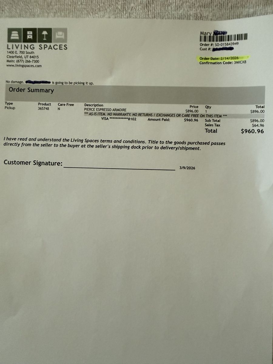 ZelleNEW. I purchased this for my sister at Living Spaces and she passed away 2 weeks later. I paid $960 with tax. See pictures for description.