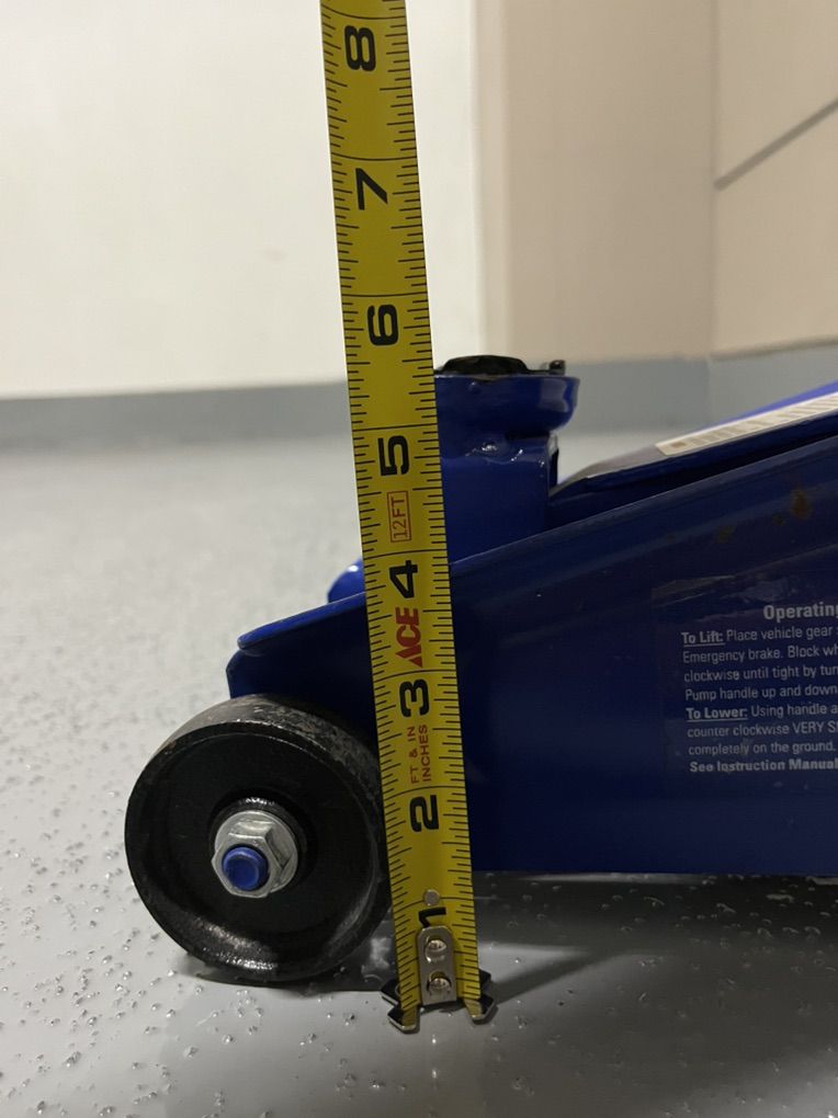 Duralast 2.5 ton Small trolley floor jack. Good condition. Min height is 5.5”. Max height 14.5”. Good lightweight design to be easily taken with you to change a tire.