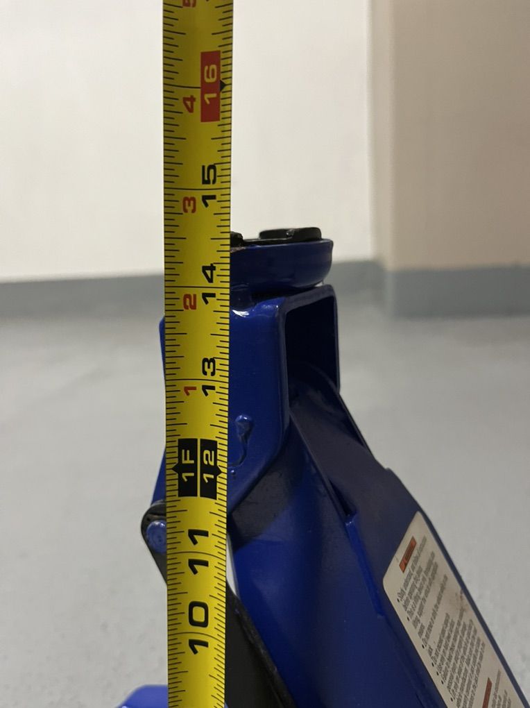 Small trolley floor jack. Good condition. Min height is 5.5”. Max height 14.5”. Good lightweight design to be easily taken with you to change a tire.