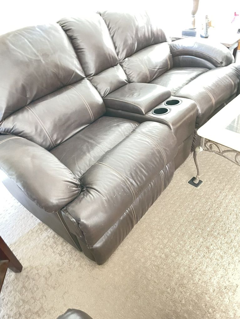 1 Electric reclining sofa & 1 manual reclining loveseat set -burgundyBROWN faux leather in color. $500. In great working condition! - I dont like to use the term “ minimal wear” used term when they look & feel great!