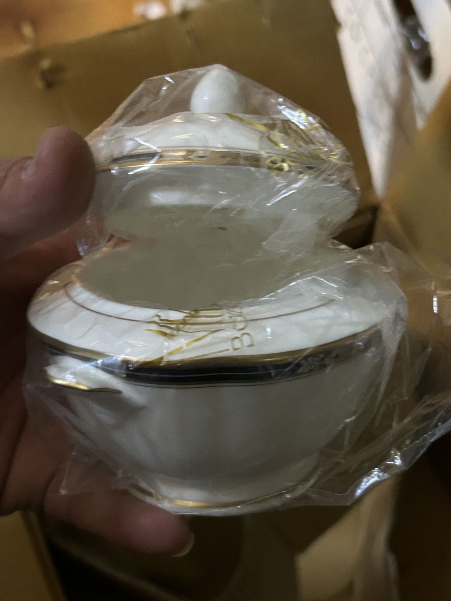 serving plate, vegetable bowl, creamer, and sugar container
