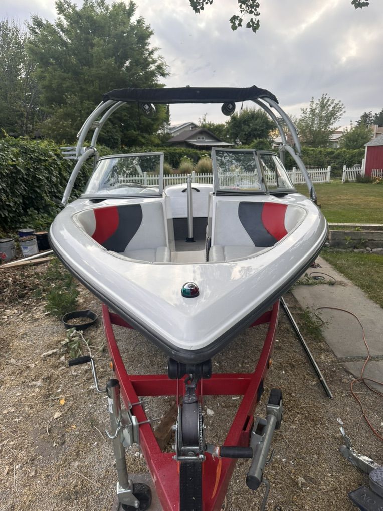 Awesome waking boarding/ski boat that we have owned for over 10 years. It has always been stored indoors in the winter. We are second owners and have invested in a custom Bimini, custom storage cover and new kenwood stereo and fosgate speakers 2 years ago. 2 seats need to be reupholstered due to normal wear, we have used sugarhouse awning in the past with great results. Sad to let it go but my kids are grown and we just don’t use it like we used to. 233 hrs and holds 10 people, 21 ft long