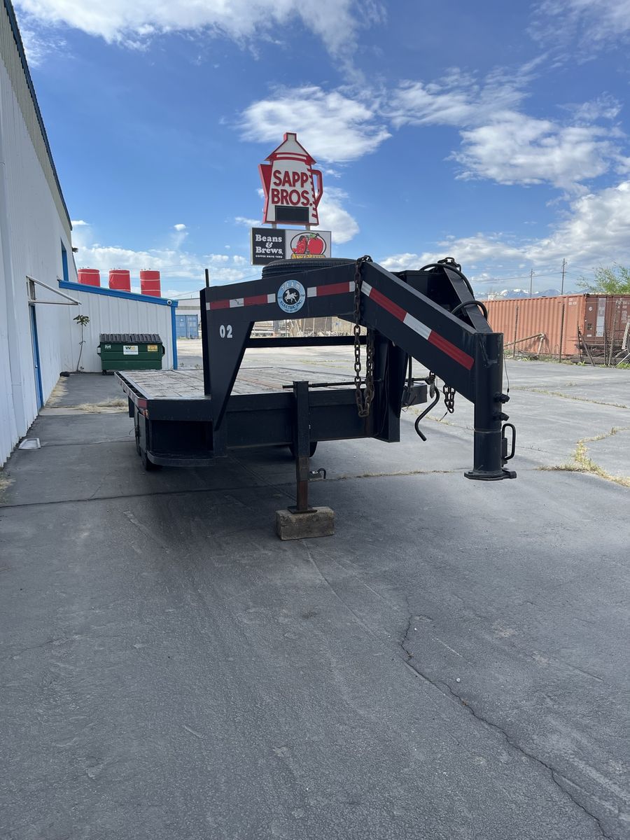16 foot Big Tex Brand gooseneck trailer. With built-in side, toolboxes, and rear step.
