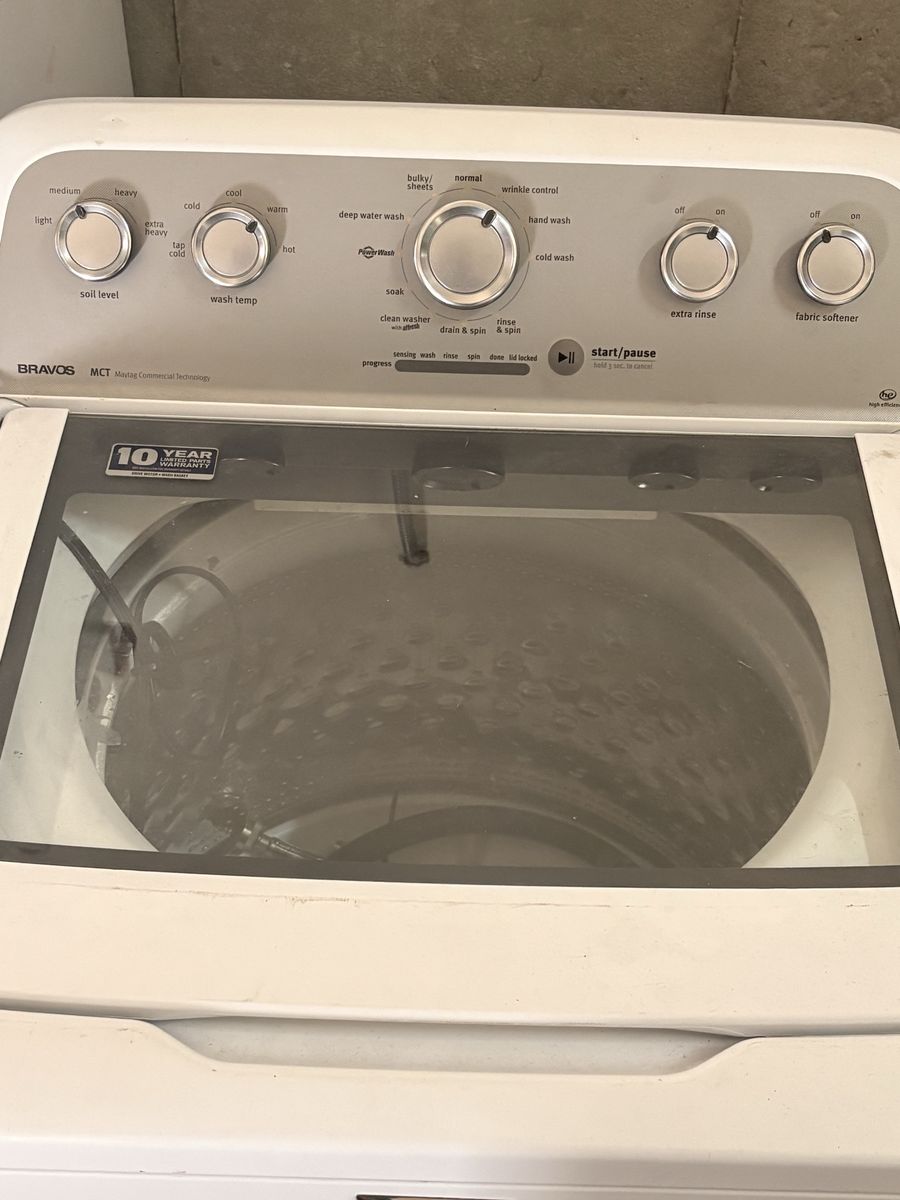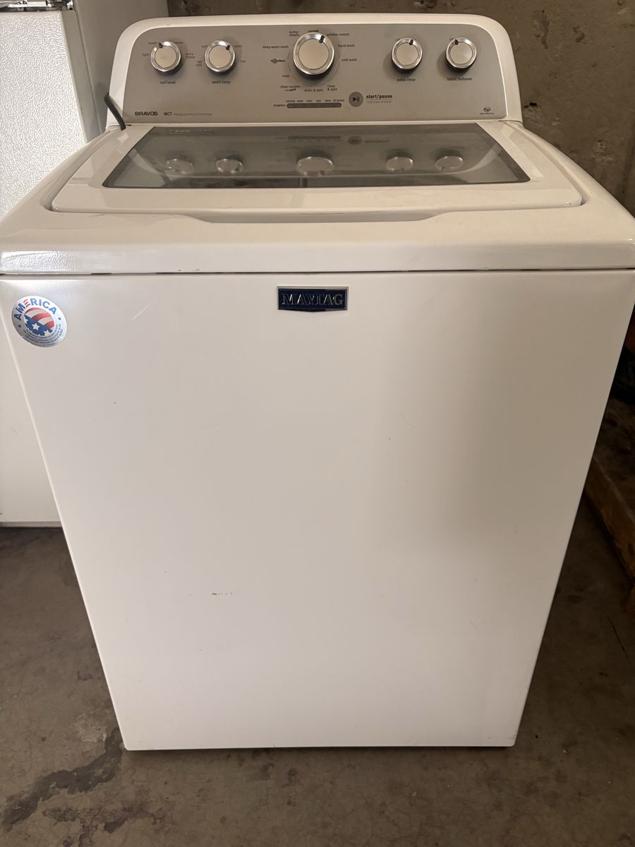 ApplePayMaytag Bravos MCT top-load washing machine. Solid, reliable unit known for durability and strong performance.