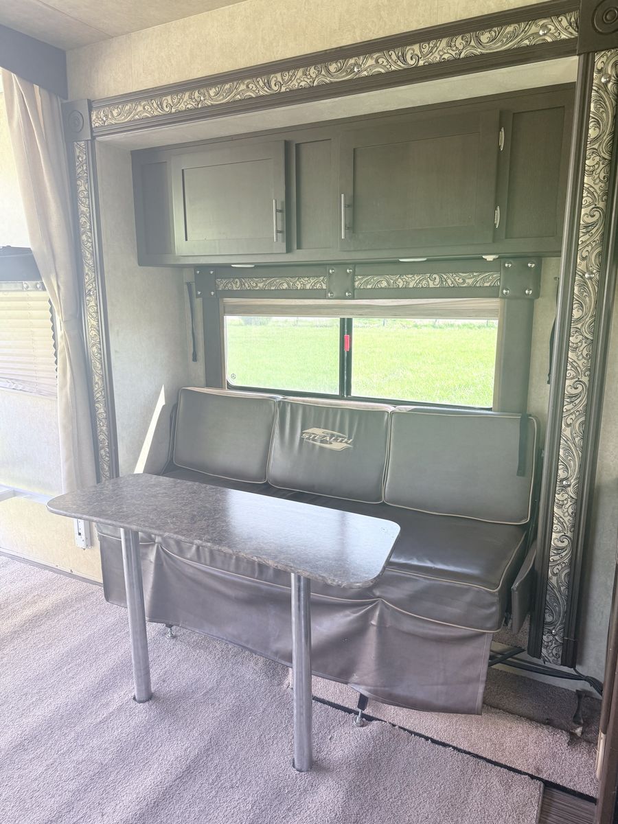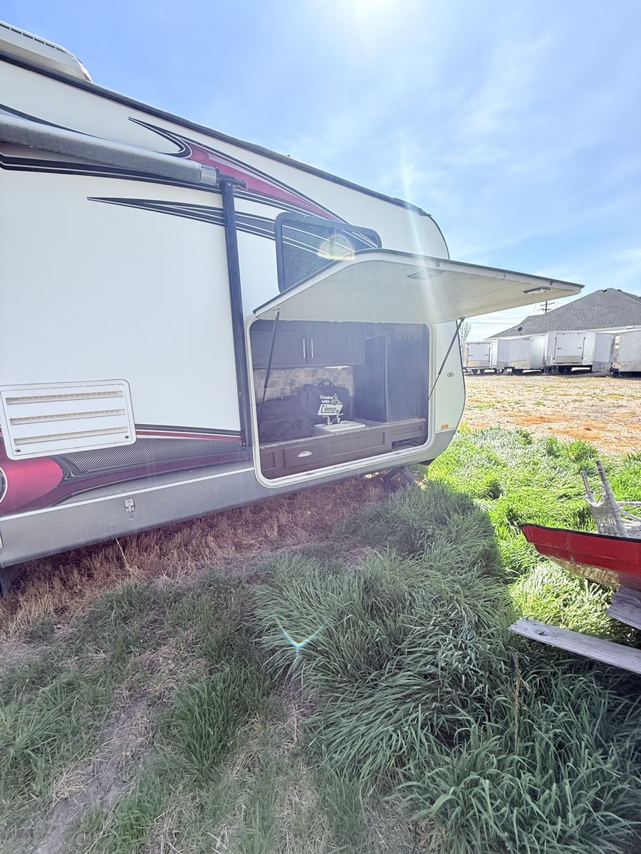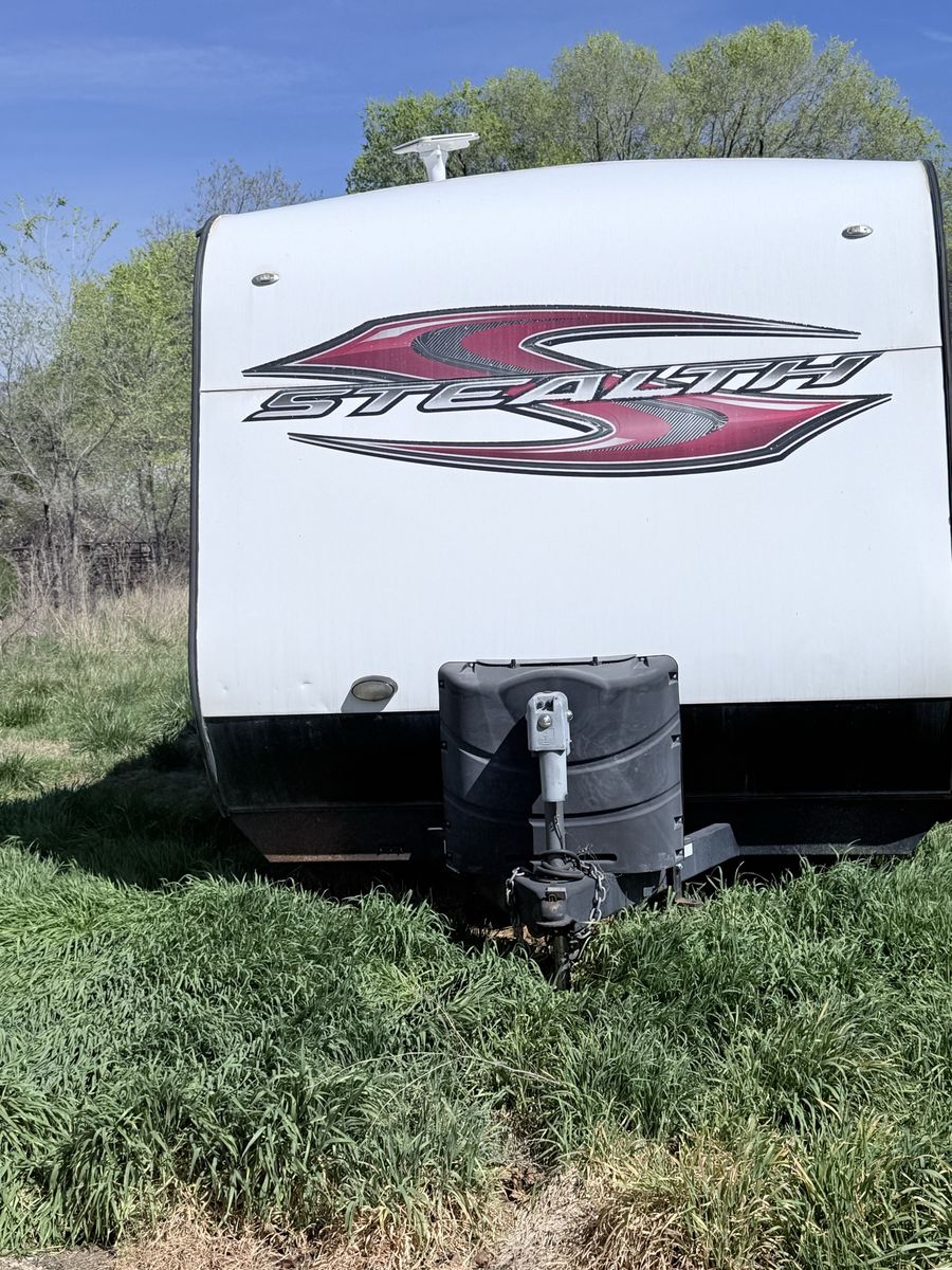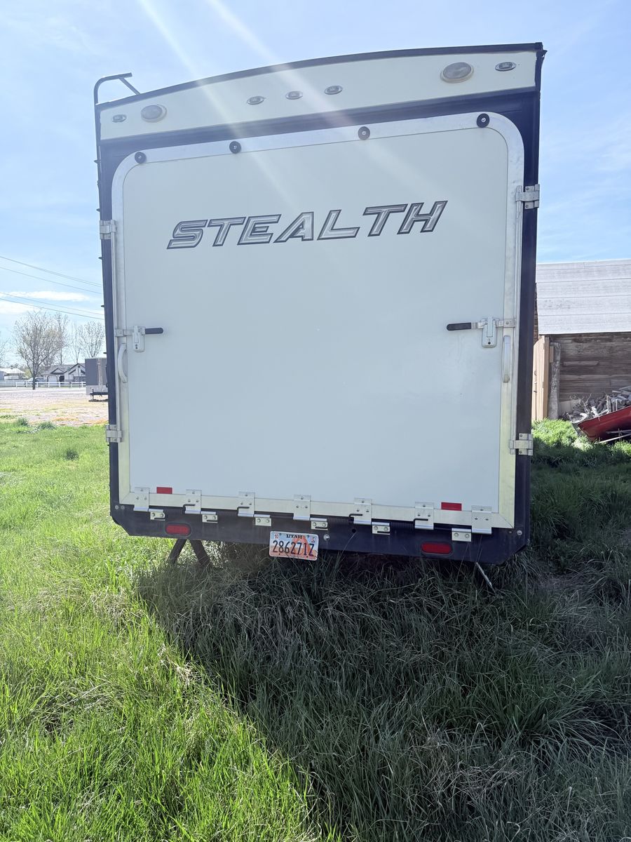 FOR SALE: 2014 Stealth Toy Hauler Fully loaded and ready for off-grid adventures • Rear ramp door – fits a 2-seater RZR • Slide-out – really opens up the whole space inside • Sleeps 6–8 comfortably • Dual axle – smooth, stable towing • Cold A/C + heat • Full kitchen (stove, microwave, fridge) • Bathroom with shower + toilet • Power awning • Onboard generator ️ • Solar panels – great for off-grid camping ️ • Fuel station for dirt bikes/ATVs • Tons of storage inside & out Clean title in hand. Turnkey and ready to go! Perfect for camping, desert trips, or hauling your toys Message me for more pics or to come check it out