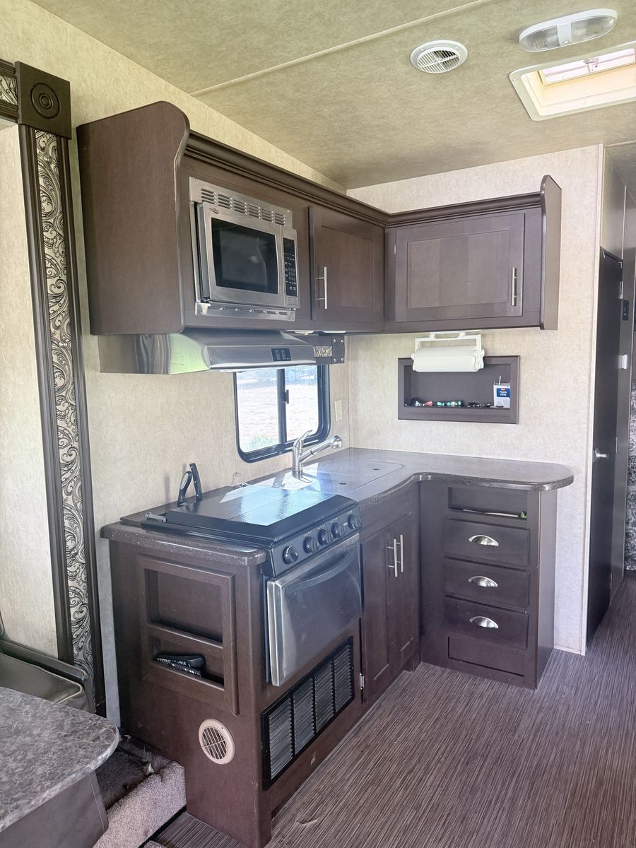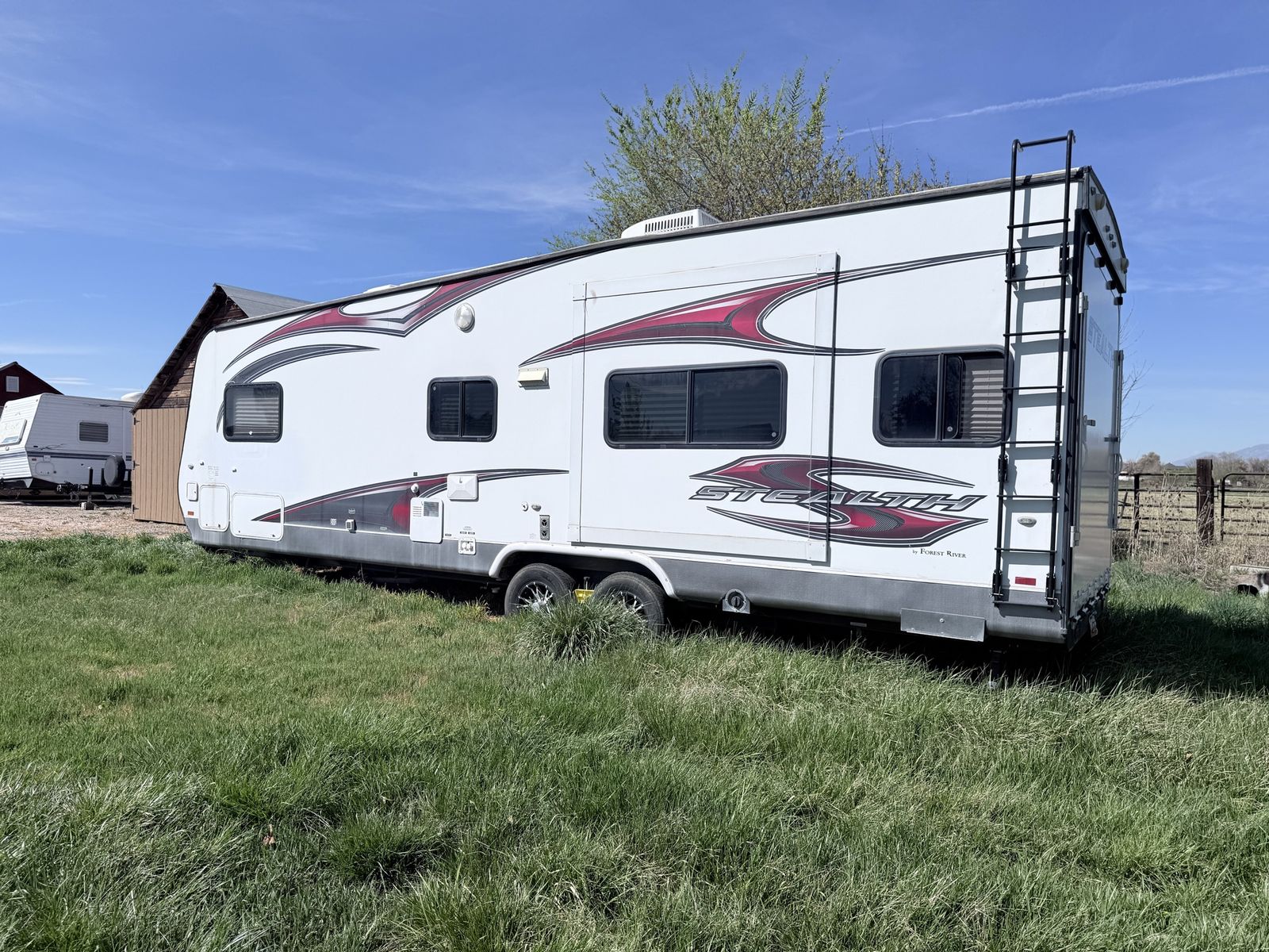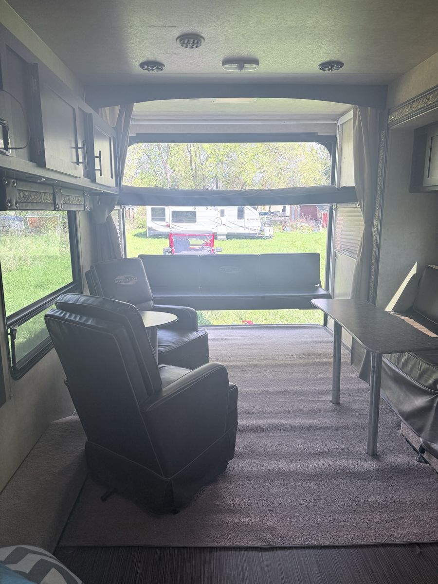 FOR SALE: 2014 Stealth Toy Hauler Fully loaded and ready for off-grid adventures • Rear ramp door – fits a 2-seater RZR • Slide-out – really opens up the whole space inside • Sleeps 6–8 comfortably • Dual axle – smooth, stable towing • Cold A/C + heat • Full kitchen (stove, microwave, fridge) • Bathroom with shower + toilet • Power awning • Onboard generator ️ • Solar panels – great for off-grid camping ️ • Fuel station for dirt bikes/ATVs • Tons of storage inside & out Clean title in hand. Turnkey and ready to go! Perfect for camping, desert trips, or hauling your toys Message me for more pics or to come check it out