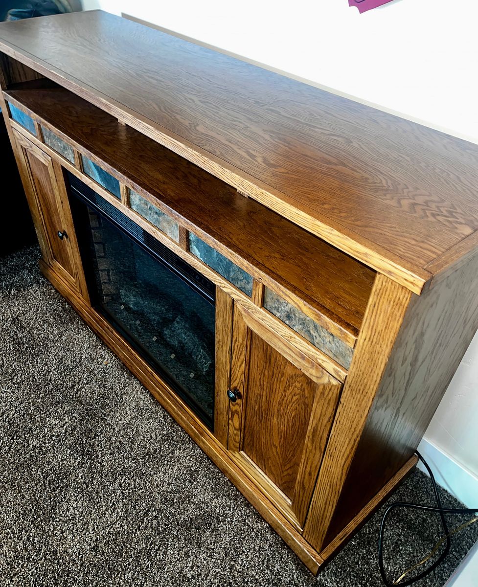 VenmoElectric Fireplace Mantle/TV Console Heater - Excellent Condition! Adjustable thermostat 62F to 80F degrees. Can heat an area up to 1000sq.ft. Dimensions 62" x 38 1/8" x 17 3/8". Weighs 190 lbs.