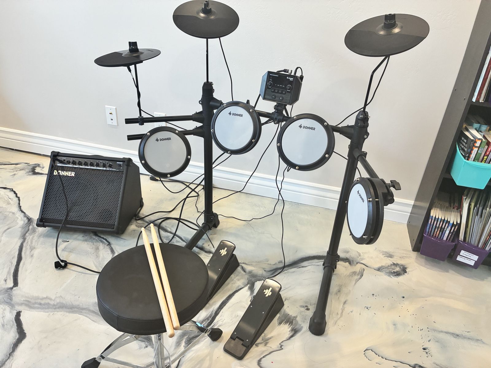 ZelleDonner DED-80 electronic drum set with amplifier. This set has barely been used (maybe 5 times total) and is in excellent condition—basically like new!