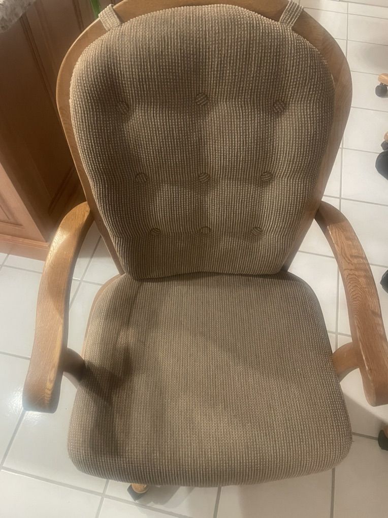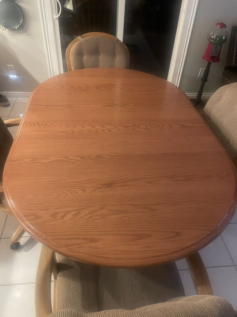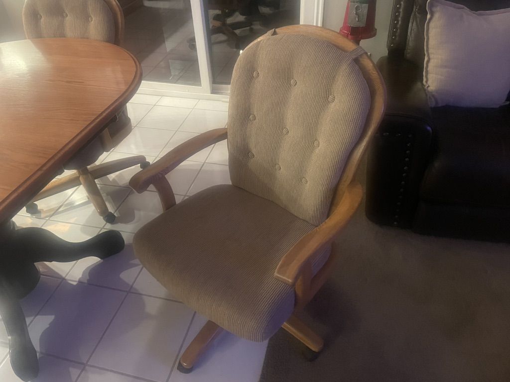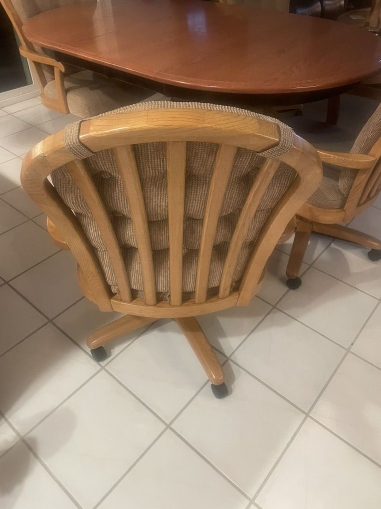 42” round custom dining table with two 12” leaves. 4 rolling chairs included. $900 OBO