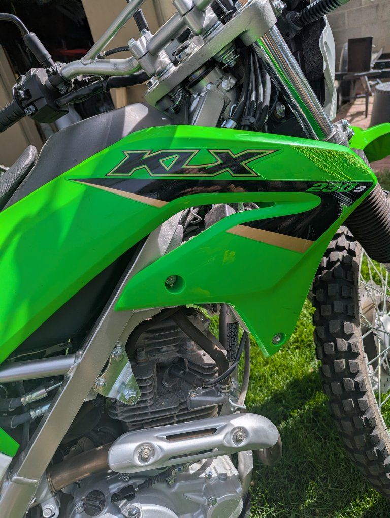 The 2022 Kawasaki KLX230S is a lightweight, air-cooled 233cc single-cylinder dual-sport motorcycle featuring a shorter, low-seat design (32.7 inches) for improved accessibility. It features a 6-speed transmission, fuel injection, optional ABS, and specialized suspension with 6.2-inch front/6.6-inch rear travel, optimized for both trail riding and street use.