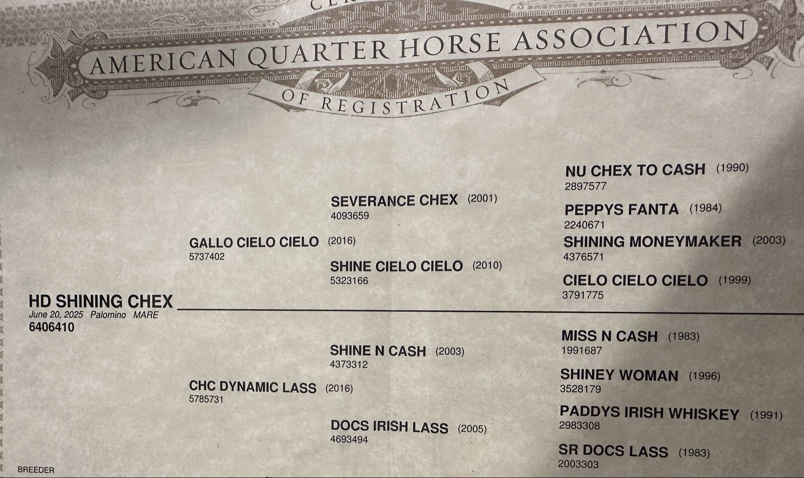 VenmoHD Shining Chex 2025 AQHA Filly Expected height 14.2