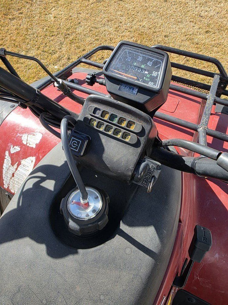 New battery New heated grips New handle bar switches New winch switch Electrical harness was repaired New starter solenoid New rectifier New winch solenoid New spark plug New carburetor New carb and air box boots New air filter New oil filter and engine oil New gear oil in front and rear differentials New master brake cylinder New brake calipers New brake pads and rotors New rear brake cable New cv axle boots New front wheel bearings New front control arm ball joints New tie rod ends Re-upholstered seat Plastics have been repaired New thumb throttle and throttle cable New speedometer cable New choke cable New fuel tank cap/fuel gauge New fuel shutoff valve