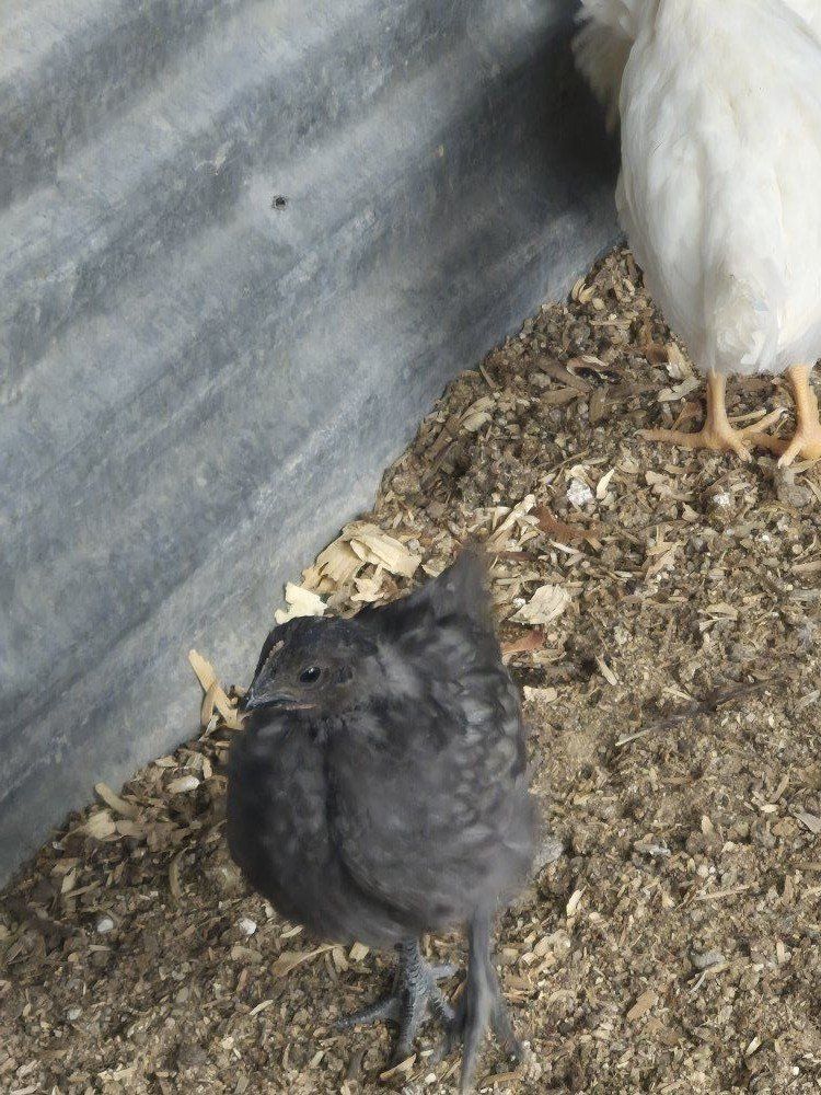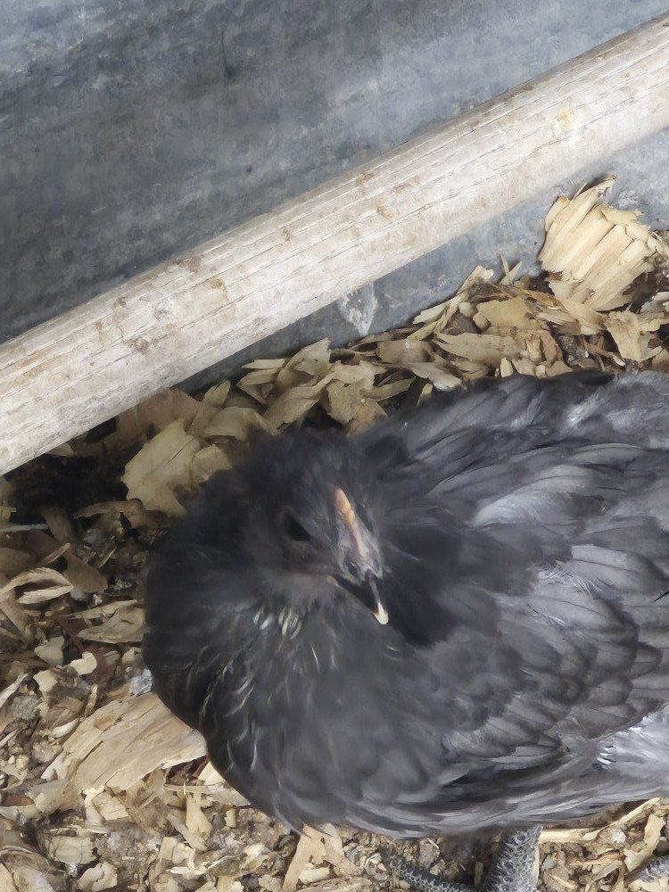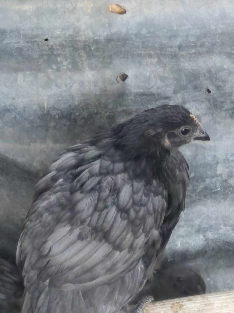 7 week old Steele Blue Novogen pullets, they will turn a lighter blue as they age but this breed are productive layers of large to extra large brown eggs Two hundred and eighty to 3 hundred plus a year.