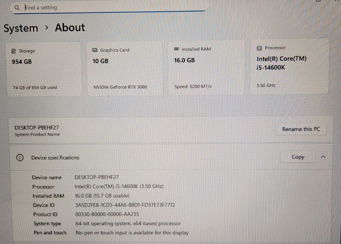 I'm a retired/disbaled IT tech that builds and sells PCs as a side hobby. This PC is in great condition, runs cool and quiet, and handles every modern title (Cyberpunk, Warzone, Valorant, Fortnite) at ultra settings with ease. This is a mix of new and used components - the used parts were my personal parts and were well cared for. The RTX 3080 is still a very capable card and keep up with the 5060ti with ease at 1440p.
