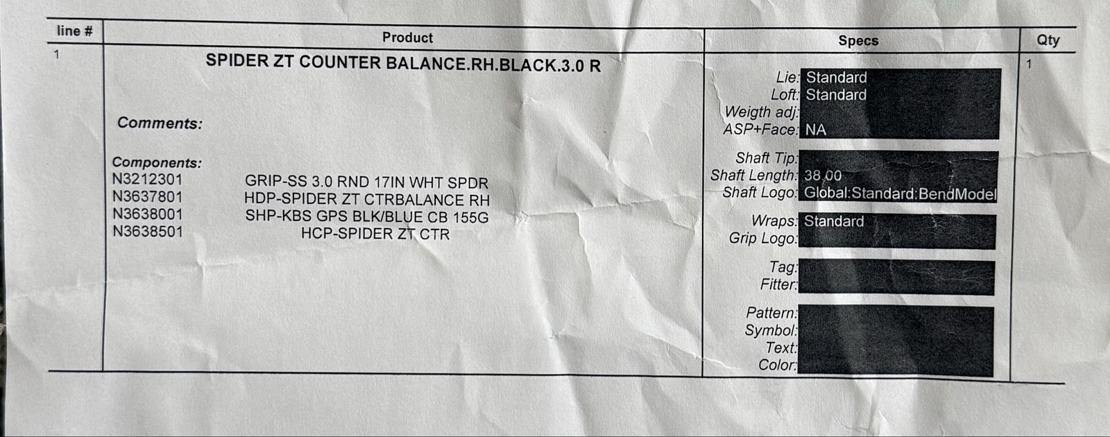 Brand new taylormade spider zt counter balance right hand black 3.0 putter, 38” length, 17” super stroke 3.0 round white spider grip, original cover magnetic close, KBS GPS black and blue 155g shaft See build sheet