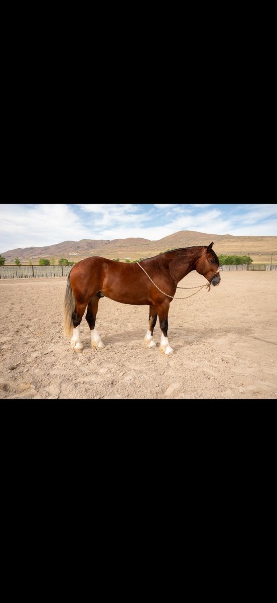 Meet Murphy — a stunning 3-year-old half-draft gelding with the looks, build, and temperament to turn heads wherever he goes. Standing a solid 15 hands and weighing in at 1,100 lbs, he offers the perfect combination of strength, athleticism, and rideability. Murphy is truly a pleasure to ride. He’s been ridden extensively both in the arena and out on the trails, giving him a well-rounded foundation that makes him dependable and enjoyable in a variety of settings. Whether you’re looking for a steady partner for relaxed trail rides or a willing horse to continue developing in the arena, Murphy is ready to step up. He has a kind disposition, a willing attitude, and handles like a seasoned horse beyond his years. All the hard work has already been put into him — now he’s ready for someone to take the reins and enjoy the ride. If you’re searching for a versatile, eye-catching gelding with a great mind and a solid start, Murphy checks all the boxes.