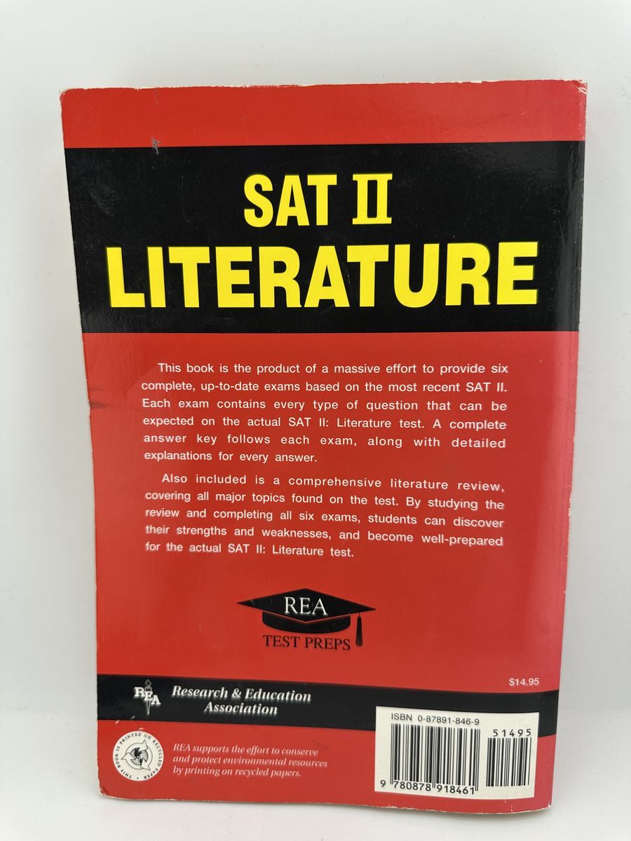 ApplePayVintage SAT II Literature test prep book published by REA (Research & Education Association). Includes six full-length exams with detailed explanations and a comprehensive review of literature topics.