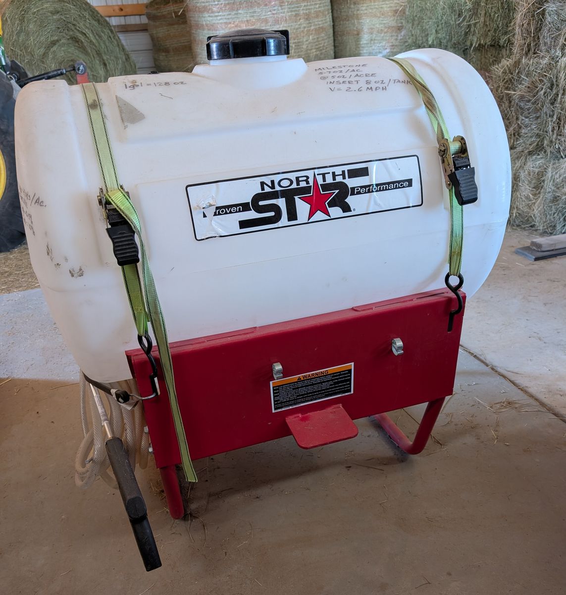 Venmo55 gal tank for Cat1 tractor mount w/integral pump and 15'+/- of hand hose with spray gun. Single nozzle sprays 14' wide. Works well. Pinedale, WY. Text 307-690-3772
