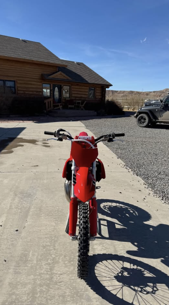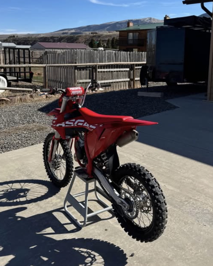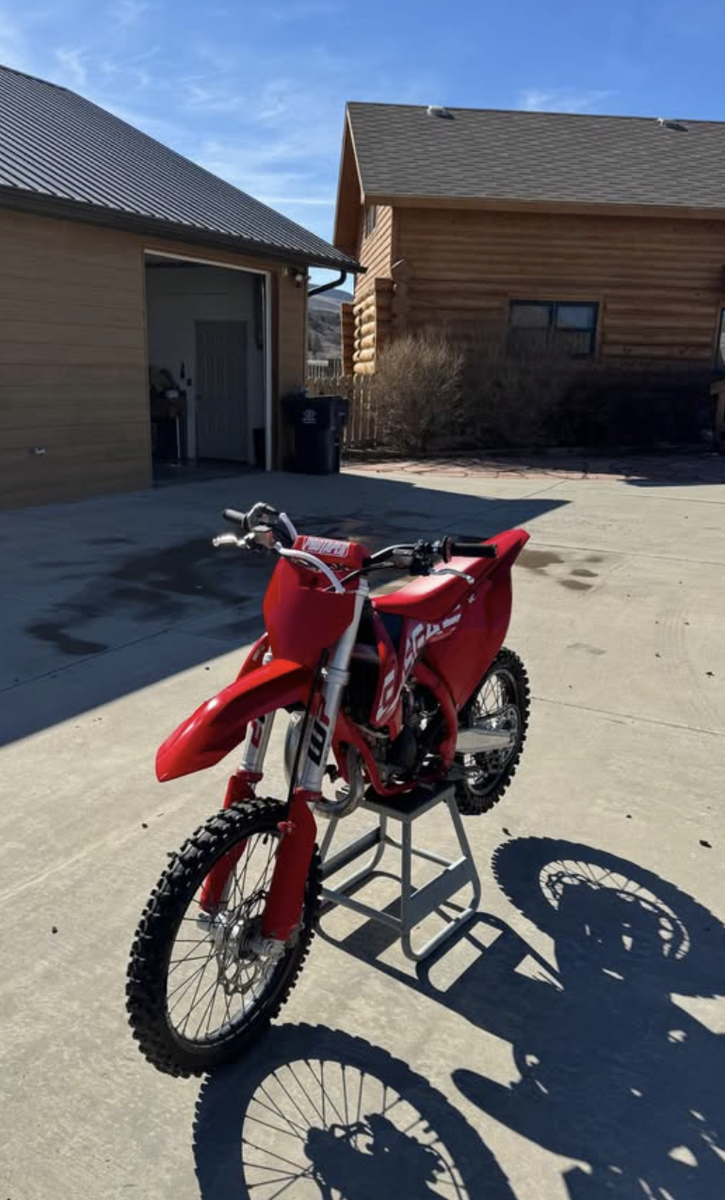 Zelle52 hours on it. Nothing wrong with it , it is a very awesome bike! My son has outgrown it and wants to get somthing bigger. Kept in a garage, never raced.