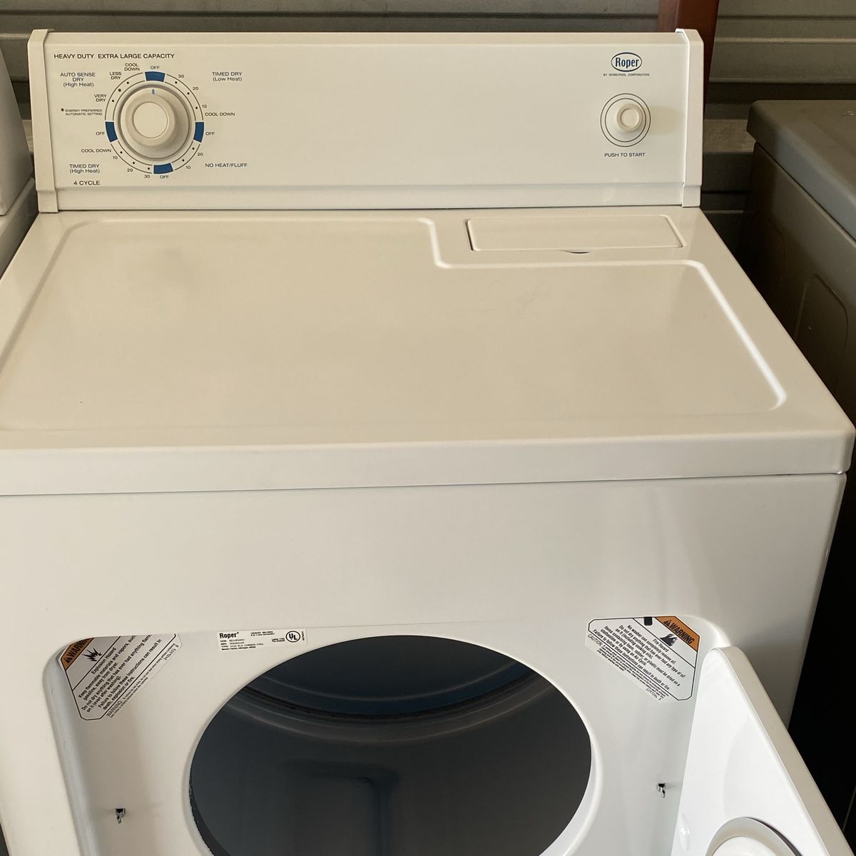 Roper 4 prong electric dryer for sale. It’s a heavy duty extra large capacity dryer with 4 cycles and 3 temps. It’s in very excellent working condition and it’s also a great dryer. CASH ONLY. Call or text me at 435-538-0178