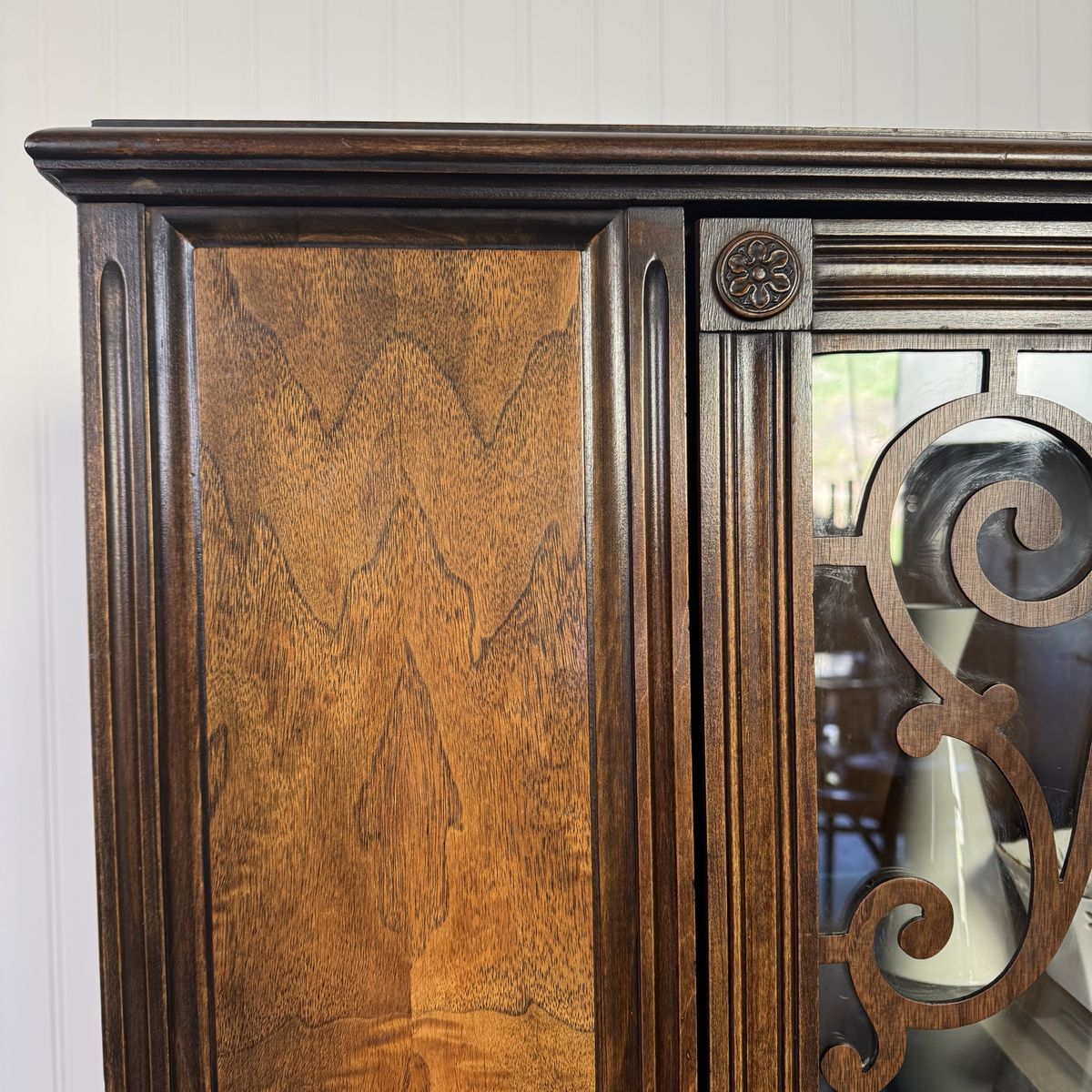 This is a true statement piece that adds depth and architectural interest to a space—great as a curio cabinet, book display, linen cabinet, dry bar, or accent cabinet.