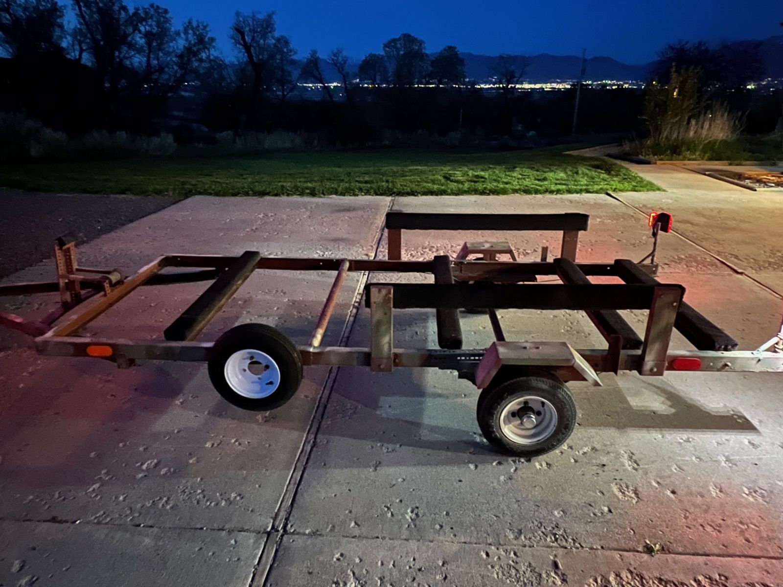 Jon boat trailer - could easily be used as a utility trailer if needed. Wheels and bearings are fine. Lights work.
