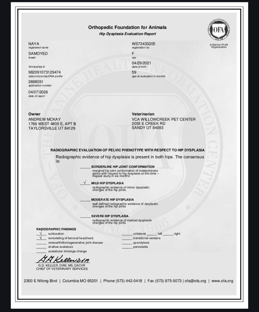 OFA health tested — hips, eyes, heart. We don't guess at genetics. We prove them.