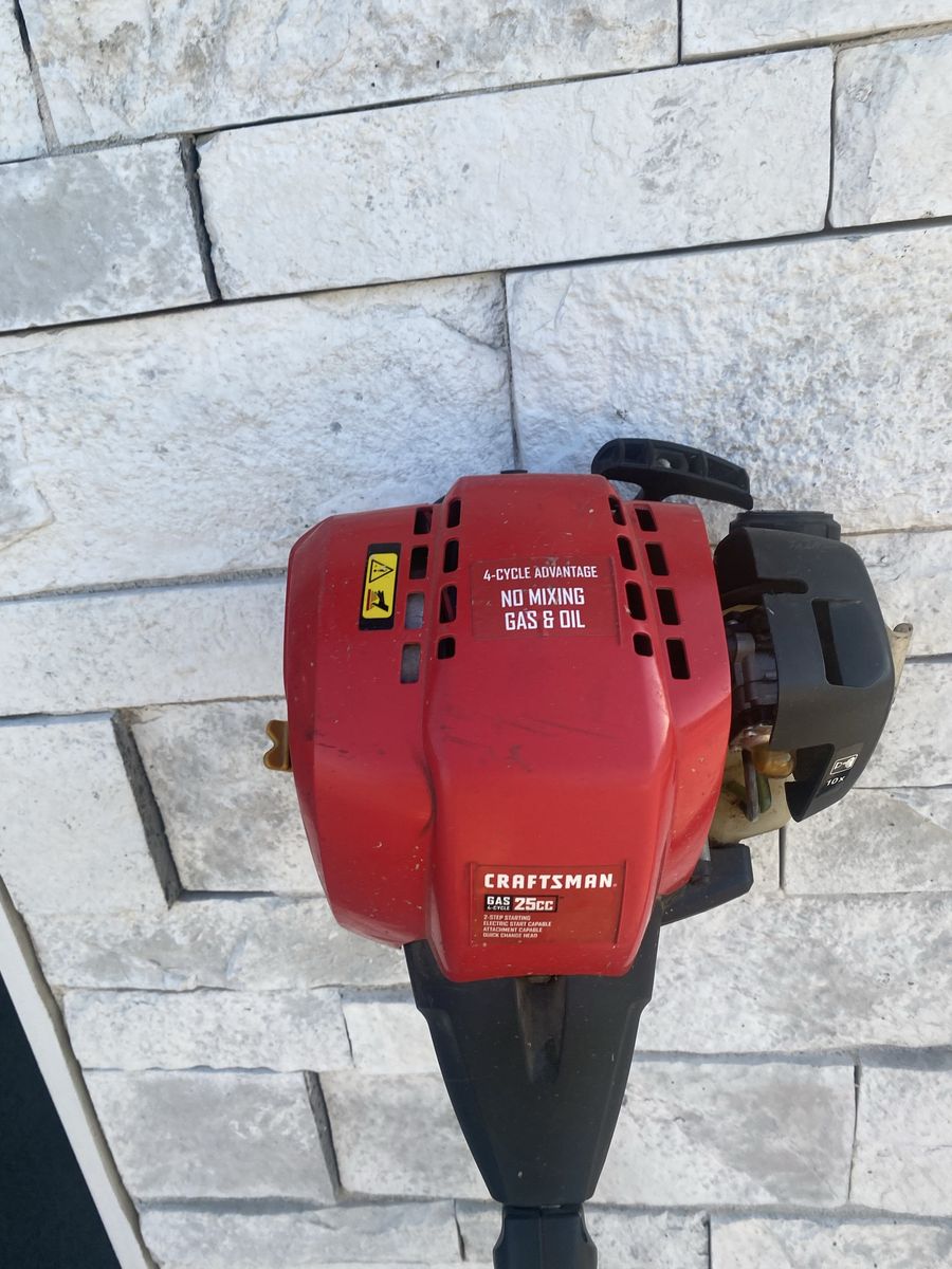 VenmoCraftsman 4stroke motor ( no mixing oil). Includes string trimmer head, blade edger, blower, and tiller attachments. Complete set! Motor runs strong, tybut doesn’t idle well, probably needs fresh gas. Hasn’t been used in a while. String trimmer is well used. But the other attachment are all is great shape.