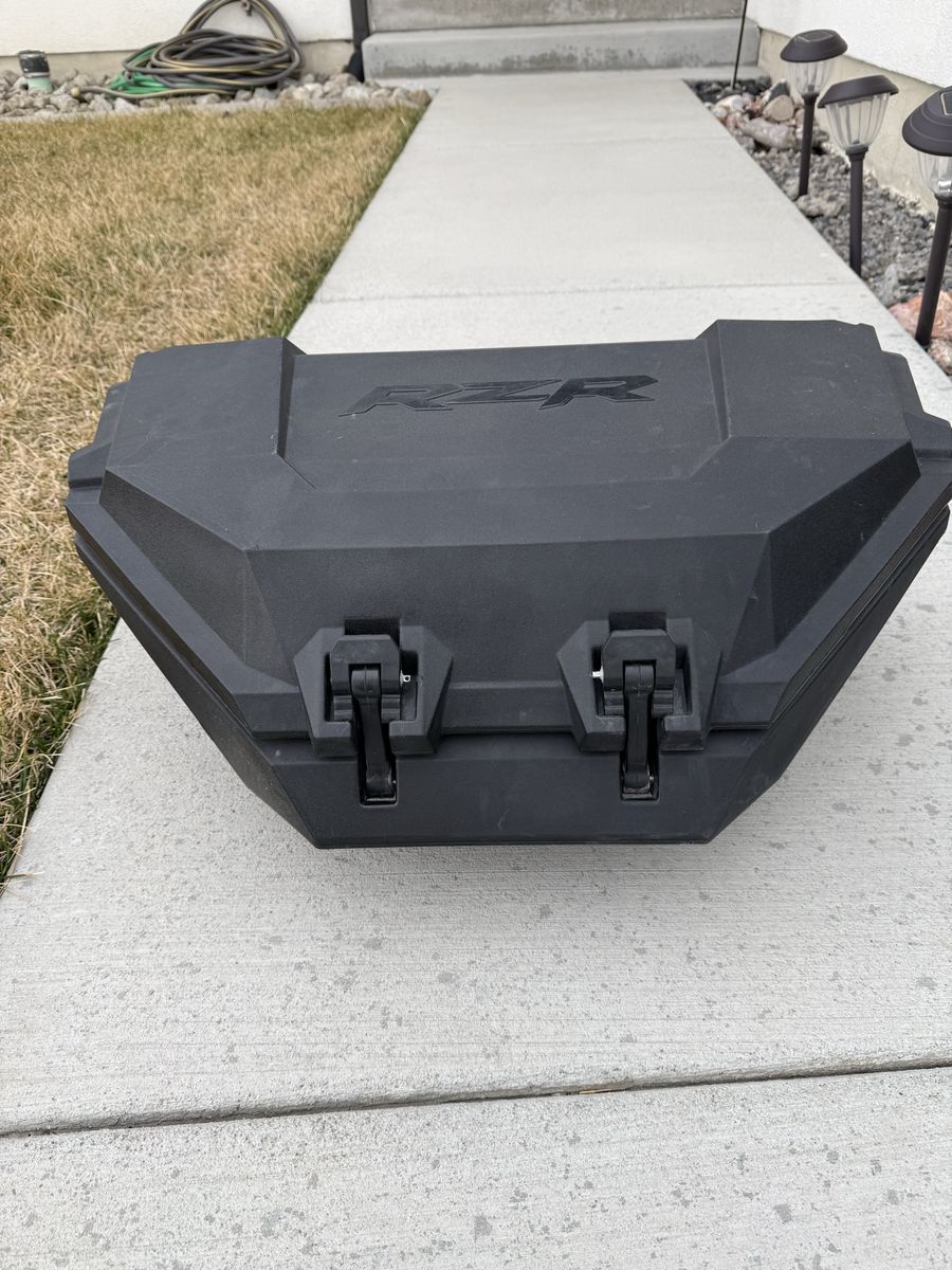 VenmoPolaris lock and ride cooler. Fits in the back of the rzr bed with quick release locks. I also have the factory storage bin that I will sell with cooler at a discount.