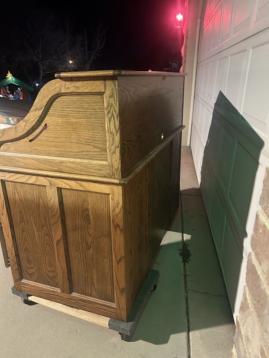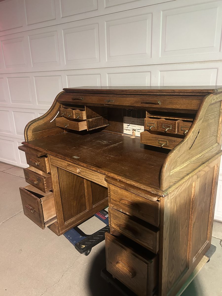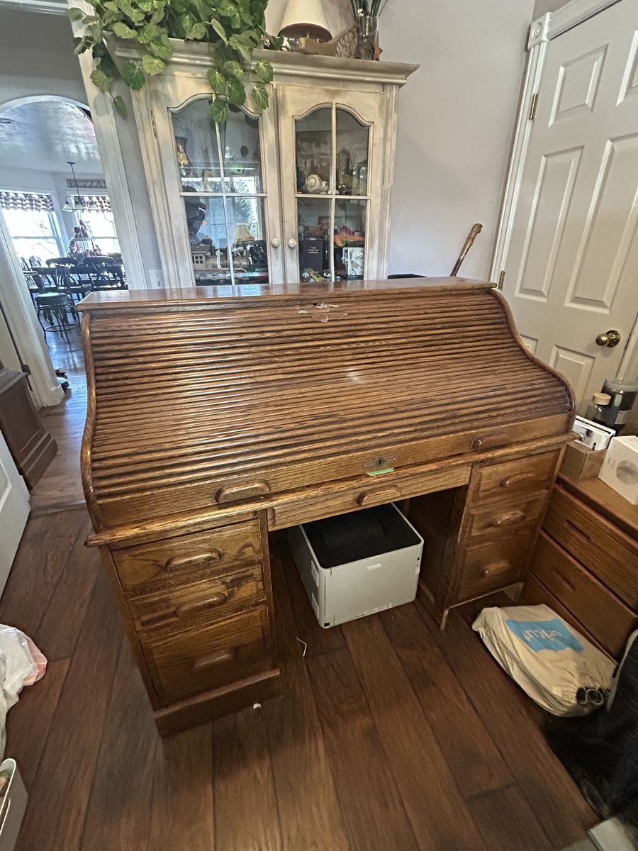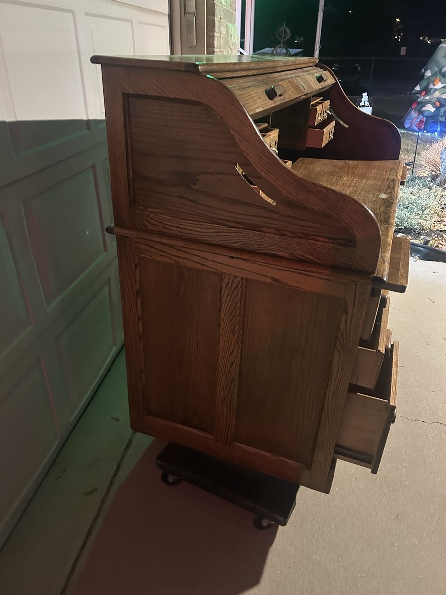 ApplePayThis is a great solid oak desk, built very well. In very good shape. I did do some modifications on the back, so I could use multiple monitors with it. The drawers all work perfectly. This has been a great desk. Size 4'5" L x 3'9.5" H x 29" W