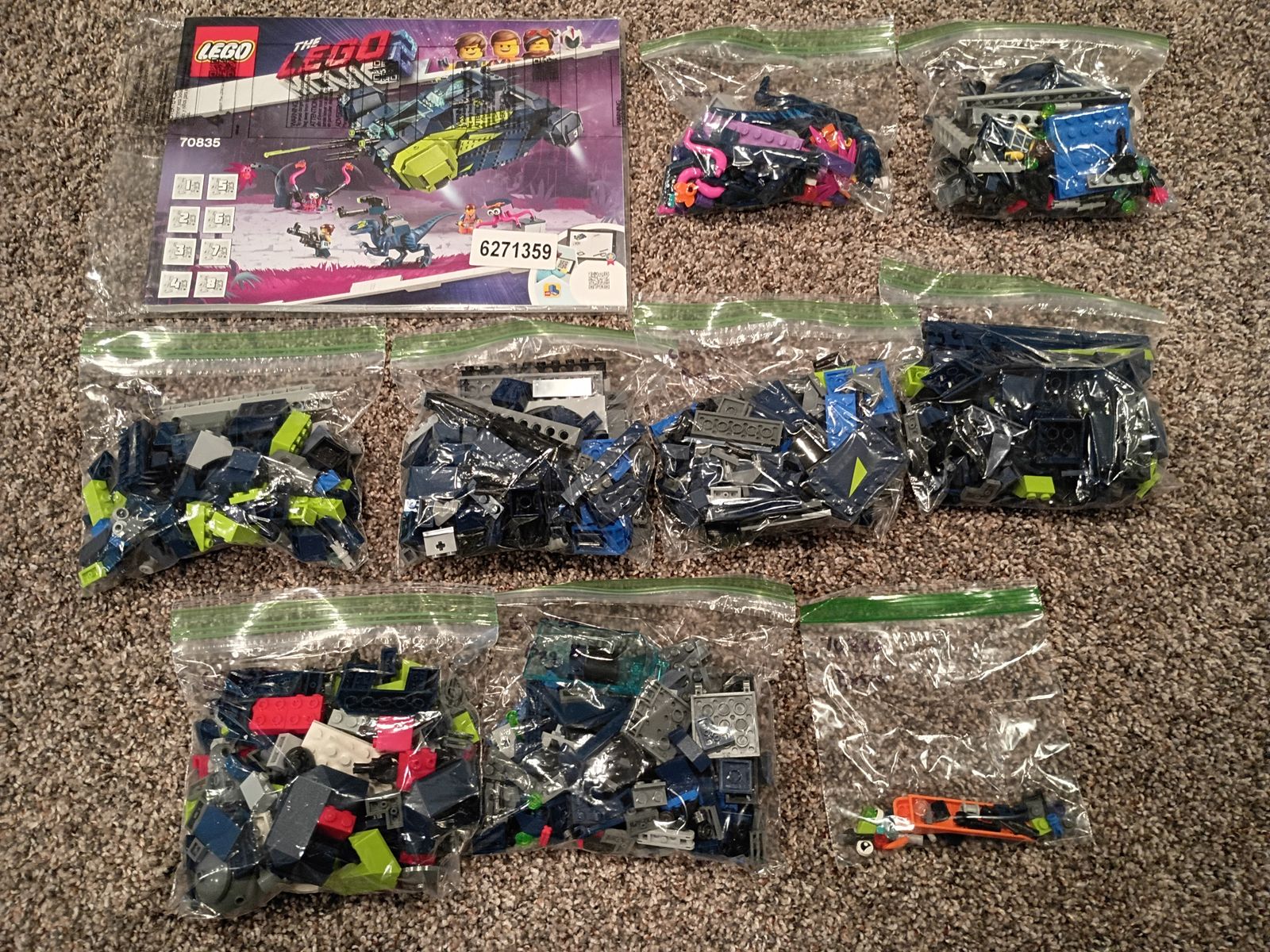 Parts verified & sorted by bag. Includes extra pieces & instructions. Box not included.