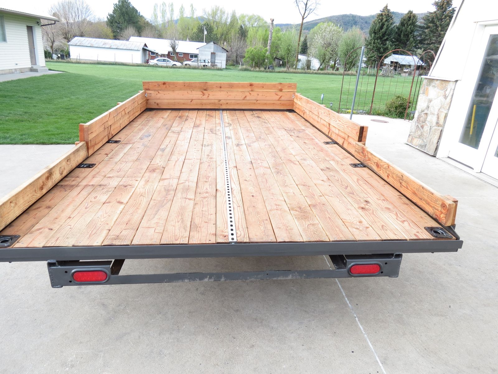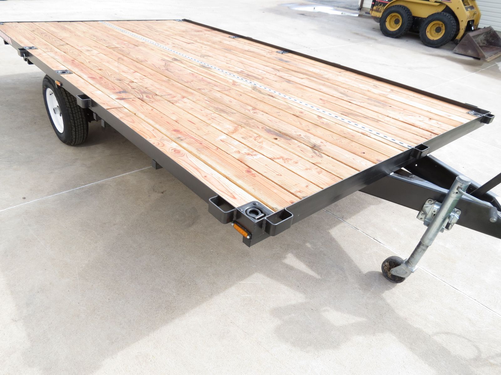 The main frame is 6 inch channel, the 2X6 decking was treated with Thompsons Water Seal on all 4 sides and the ends before being installed. There are 4 heavy duty tie downs, secured to the frame, on both sides. There is also a full length tie down bar in the middle of the trailer.