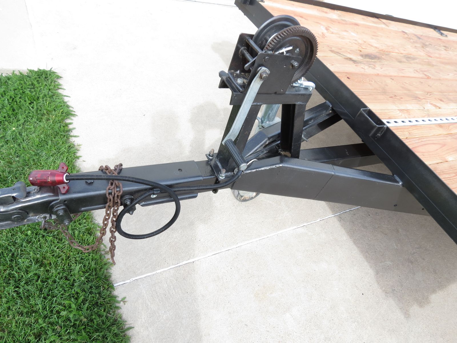 All sharp corners have been rounded to prevent snagging of any load (rafts) when sliding over the rear edge. The winch works very well. The wheel bearings are new, the tires are new. All lights work.