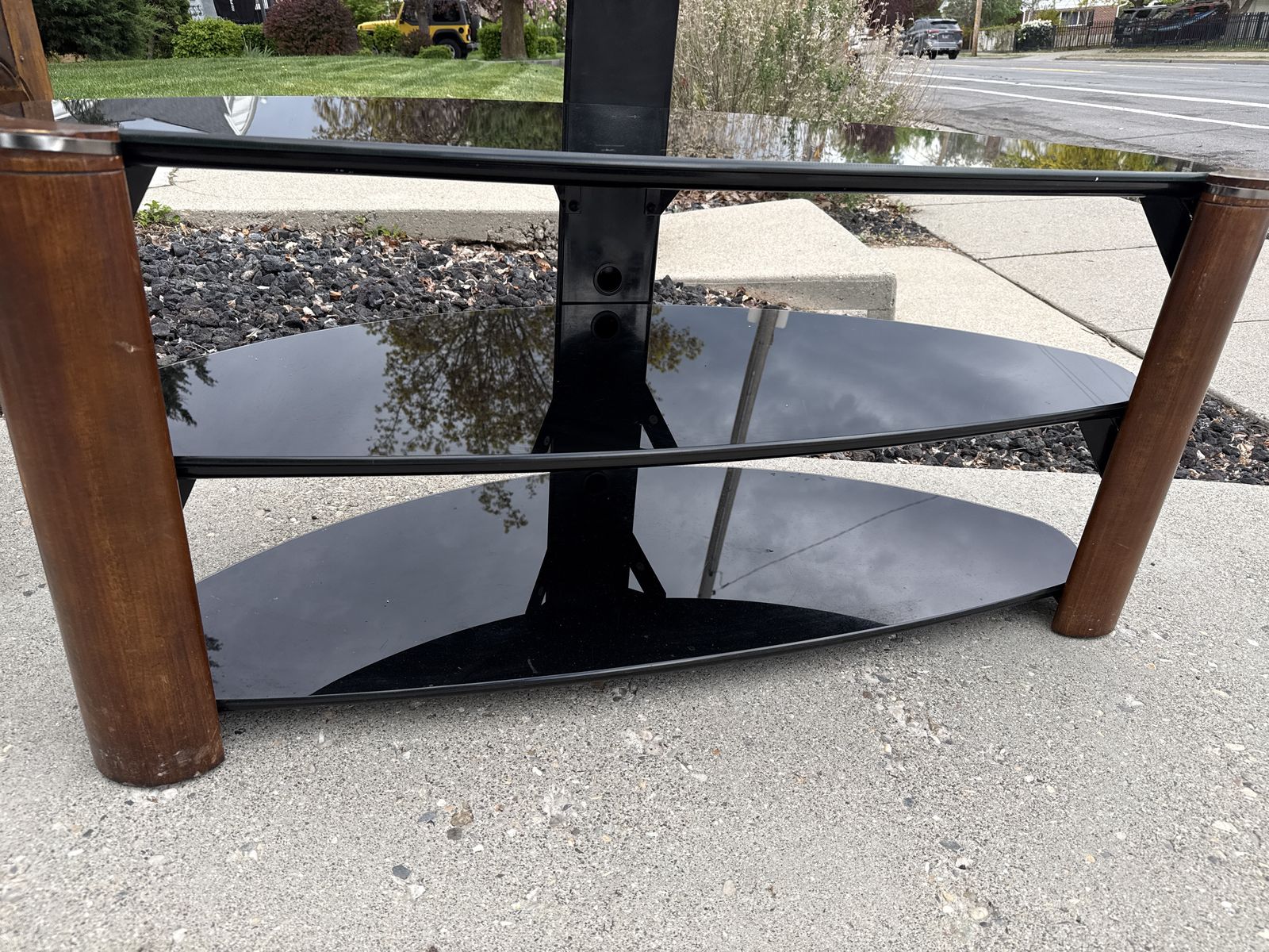 ApplePayEntertainment stand wood and black glass