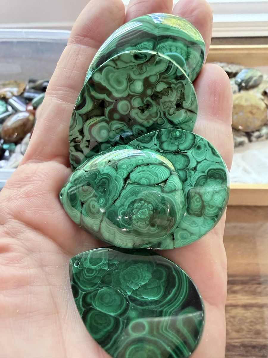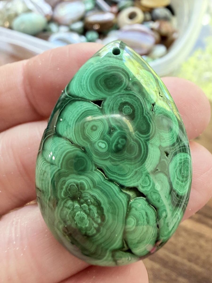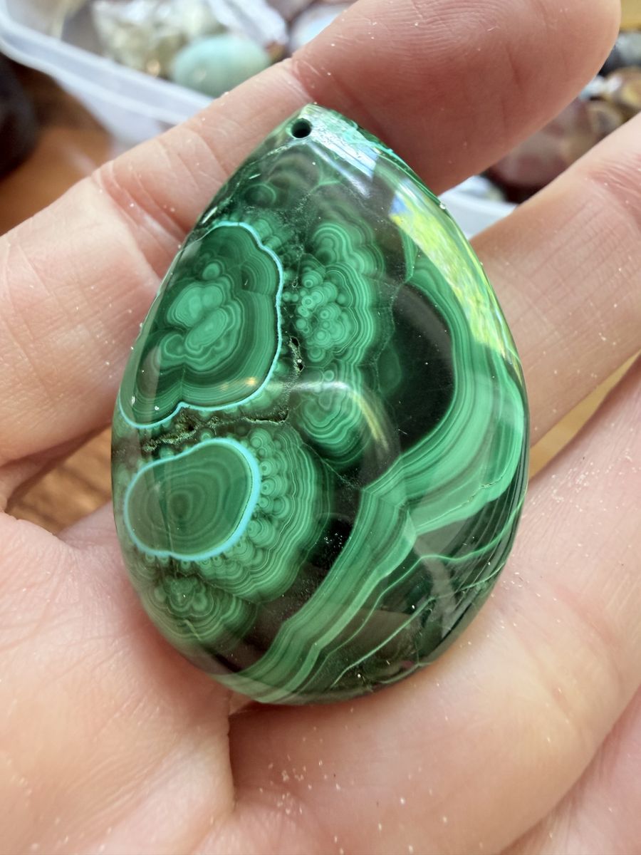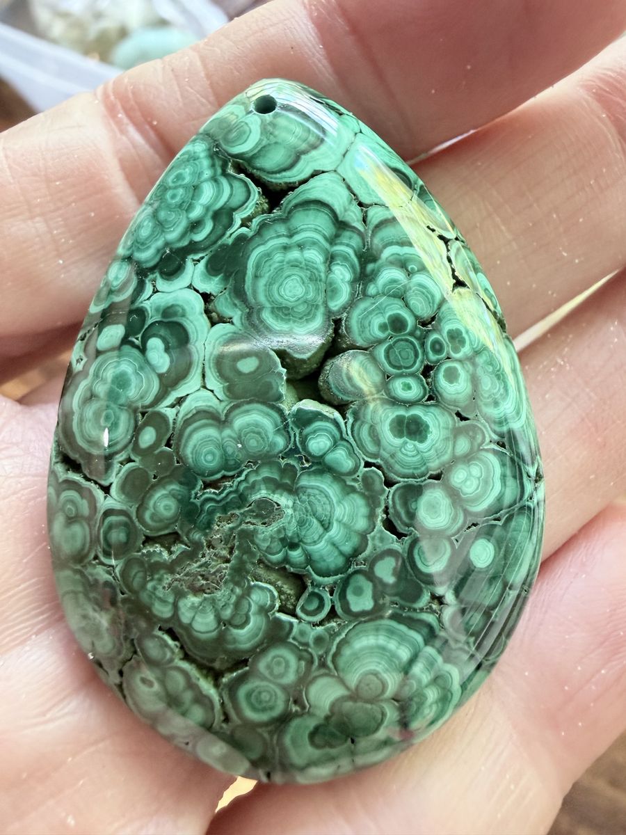 Description: Beautiful 100% natural malachite pendants with bold green banding and classic orb patterns. These are not treated or dyed—what you’re seeing is natural copper mineral formation.