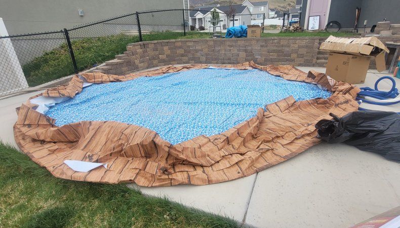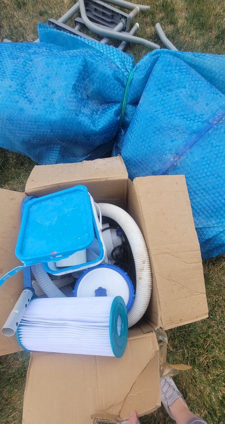 Venmowe purchased this used above ground pool in the fall, and it's too big for our patio. it's 22ft Round and 52" tall. comes with pump and cover.