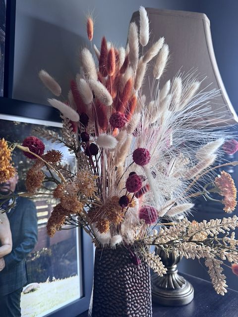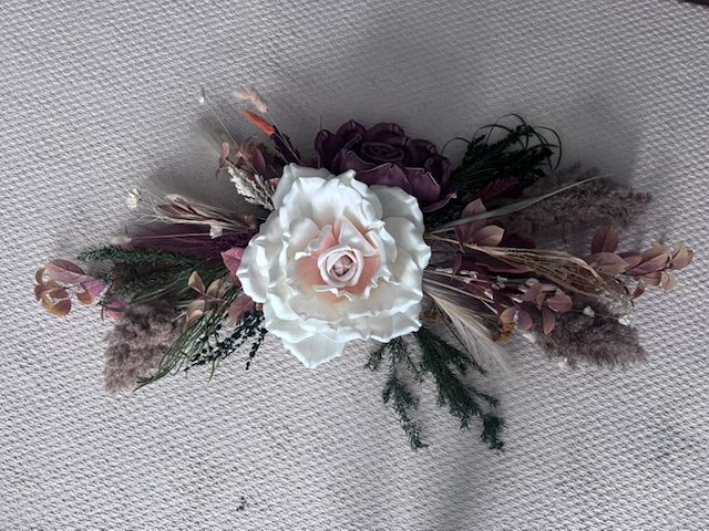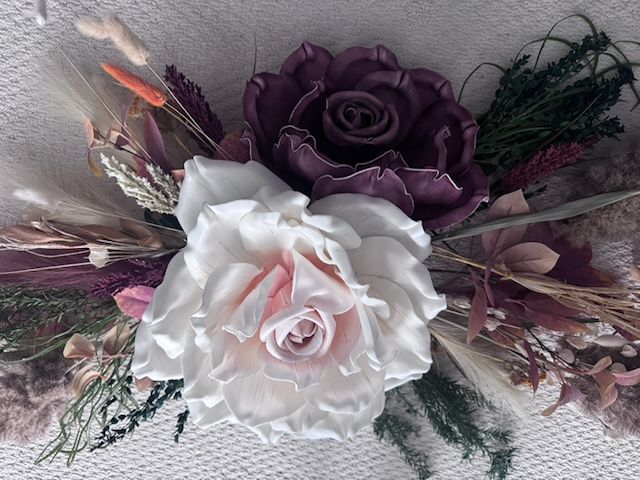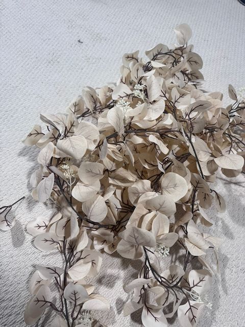 VenmoThere are 2 large arrangements that were used on a pergola. I have the white floral garland and some dried flowers that were used in the centerpieces. Some of the flowers are real and dried others are fake but look great.